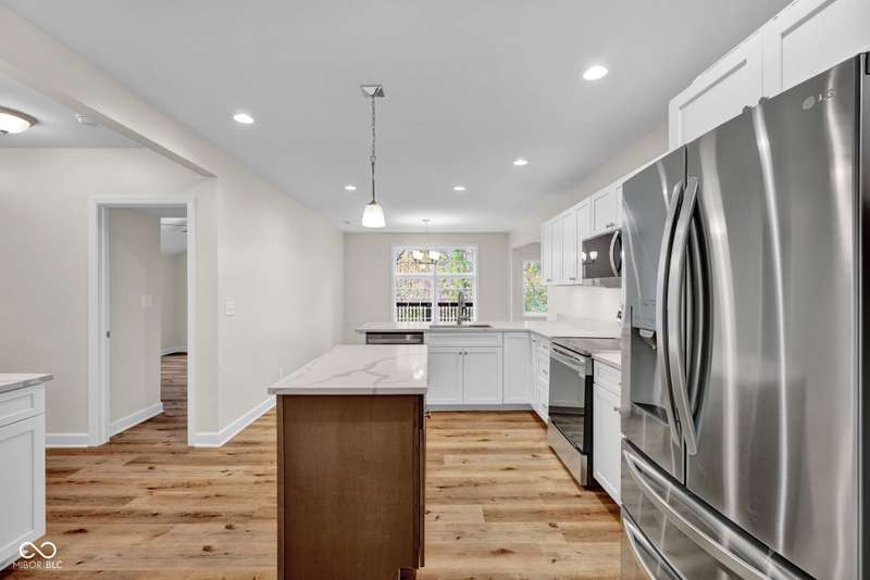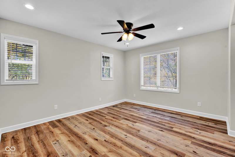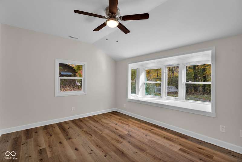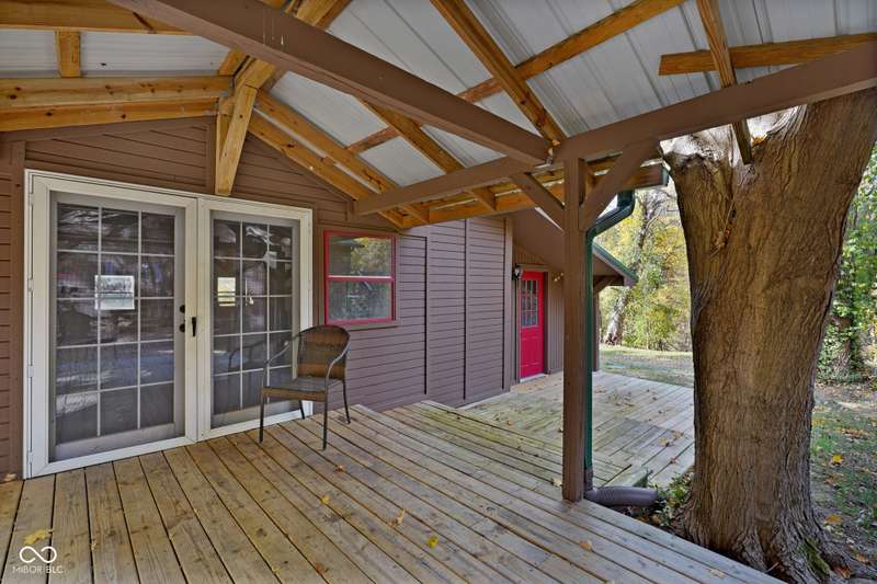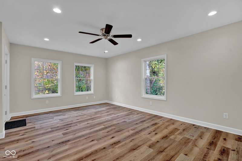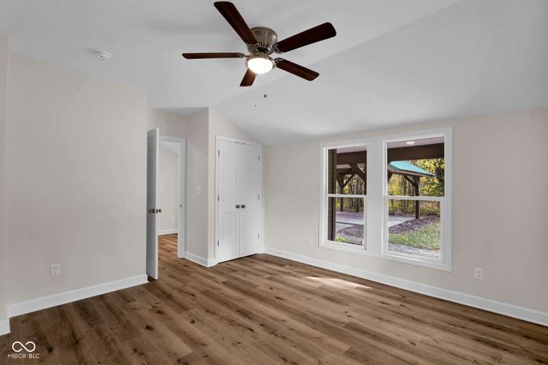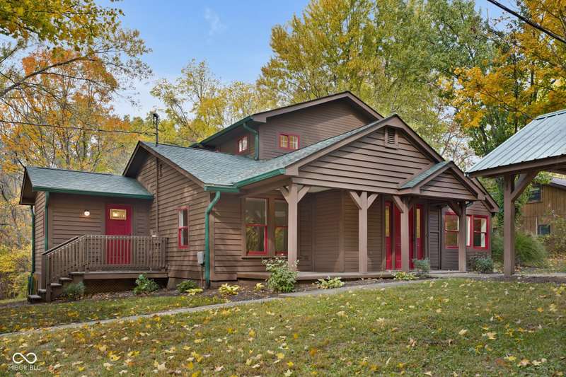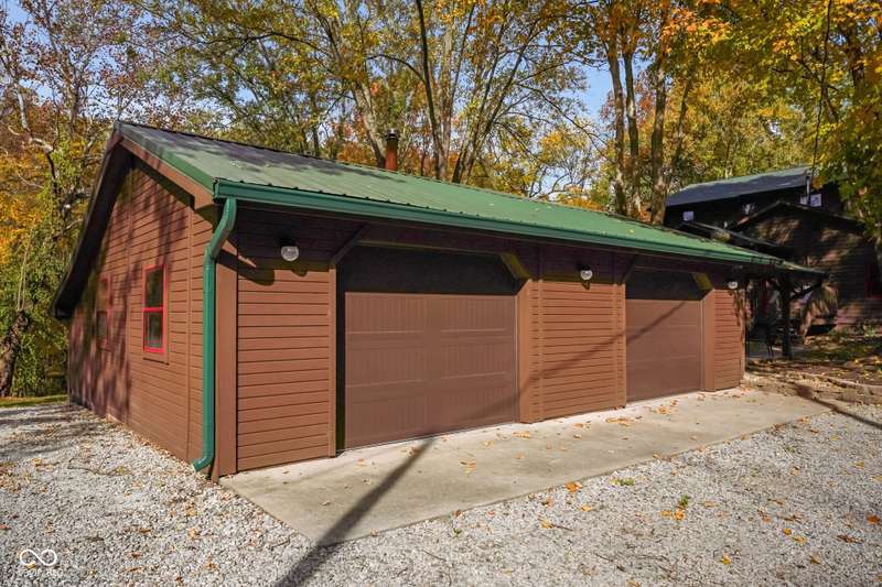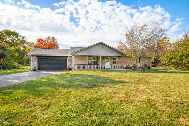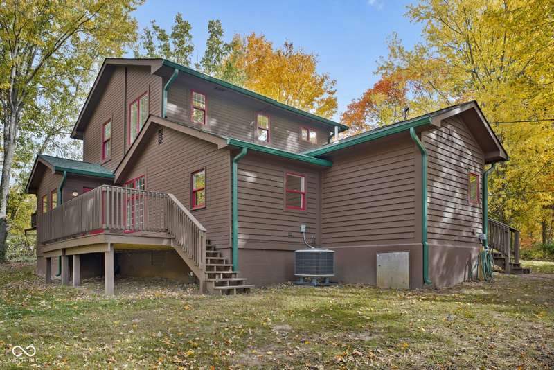 Fully renovated with Personality Plus! What a fun layout in this beautifully redone, versatile floor plan, country home on 1.75 acres of wooded privacy. Gleaming quartz countertops and appliances greet you in the spacious eat-in kitchen, with an island, pantry and breakfast bar too. Main level has a large living room that opens to the back deck, two bedrooms, a den/office with closet and seated bay window, nook by the half BA perfect for school work or a million other interests, plus laundry room/mud room by the full BA with its own separate entrance and side deck. New, new, new nearly everything: roof, septic system, HVAC, plumbing, electrical, insulation, drywall, floor joists, water heater, doors, kitchen, bathrooms, luxury vinyl plank flooring, lighting, fans, etc, etc. The entire upper level is a lovely primary suite that almost "feels like a treehouse", with windows in every direction, new blinds, a large sitting room, enormous walk-in closet, fun barn doors, double sinks, roomy walk-in shower and fantastic tub! Lots of lighting and tons of closet space. Oversized 2c garage with work area and separate room (clean room for woodworkers?). Gobs of parking, including space for a boat, trailer, or motorhome. Large covered standalone patio perfect for parties or enjoying the front yard. City water. High speed fiber available. Monroe-Gregg schools.
