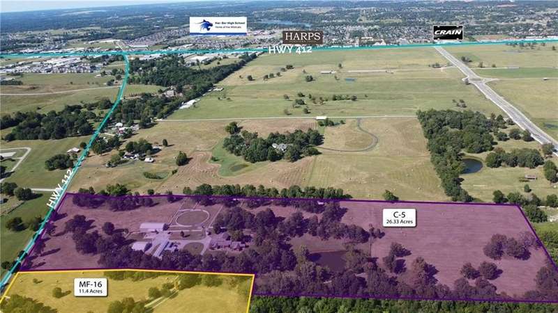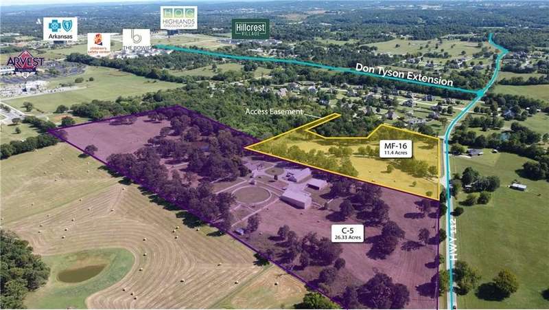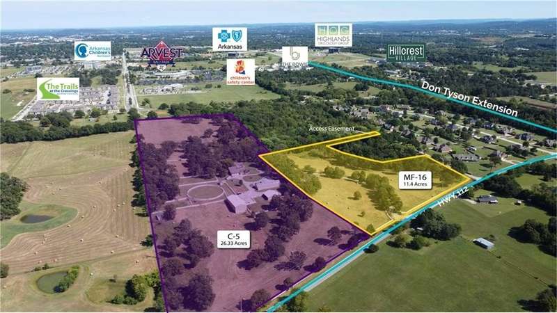 LOCATION, LOCATION, LOCATION. 37.76 acres prime development property, located in West Springdale. 26+ acres already zoned C-5 and 11+ acres zoned MF-16. Property has frontage along Hwy 112 and just south of Don Tyson Blvd extension. Improvements on property could be income producing until development occurs. Call agent for more details.