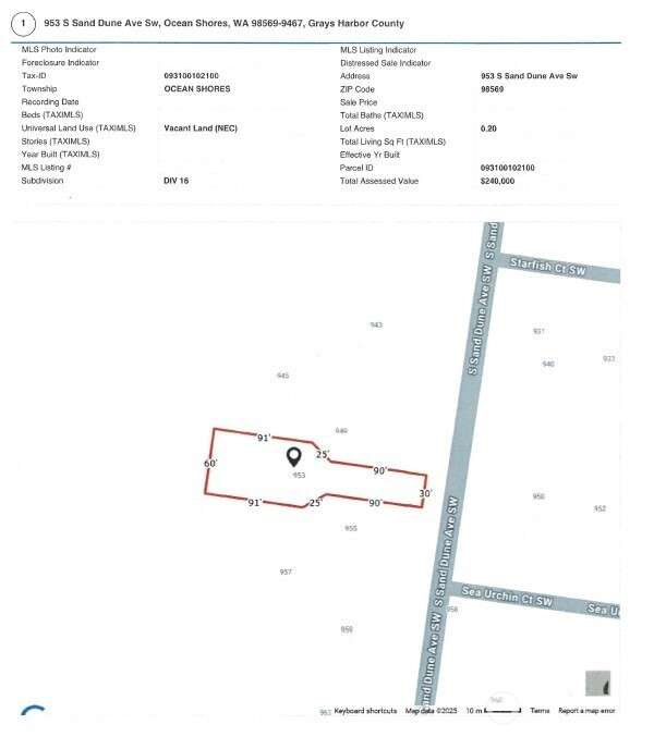 Ocean Shores, WA ~ Ocean Front Lot w/60' of Frontage!! Walk off of your Lot onto the Sandy BEACH - Enjoy our Famous Clam Digs; Fly a Kite or Beach Comb for Treasures! Ready to RV Camp up to 90/120 days a year OR Plan that Personal Beach Resort for Full or Part Time Living? Water, Sewer & Power in the Street for easy hook up. Short Drive to Downtown or the Oyehut District for Dining Options, Shopping & Entertainment. Bring your kayak/canoe for a peaceful float down the 23 Miles of interconnecting Canals that join up to 2 Fresh Water Lakes for Fishing & Boating. Jetty Beach & Bay Beach ~ offer fishing, crabbing & surfing! Take in an Early Tee Time @ our 18 Hole Golf Course. Walk the Nature Trails of Weather Wax. Options are FUN & limitless!