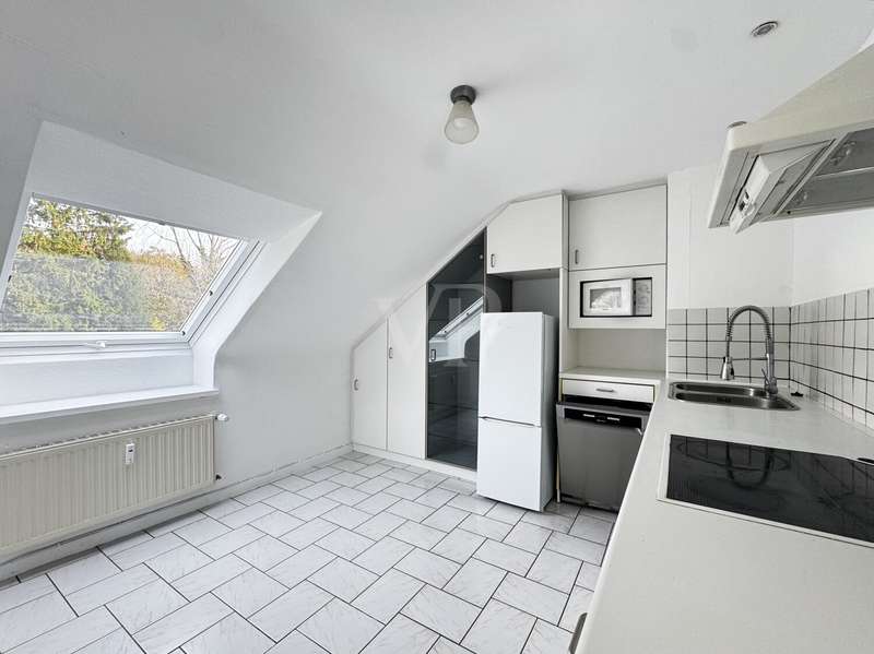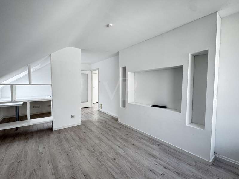 In a well-kept 3-family house in a preferred, quiet residential area, this approx. 60 m² top-floor apartment on the lower Rotenbühl is ideal for singles, investors or people who appreciate a harmonious and relaxed living environment. As soon as you enter the apartment, you are greeted by a warm, open ambience: The sloping ceilings give the rooms character, while the view over the surrounding rooftops conveys a feeling of space and tranquillity. Despite the lack of a balcony, the elevated position creates a feeling of lightness and spaciousness. The living space is divided into a bright living room, a bedroom, a shower room and a large kitchen. The clear room structure offers practical storage space and creates a cozy home where you can relax and unwind. A charming top floor with character, tranquillity and views - a rare opportunity in this location in Saarbrücken.