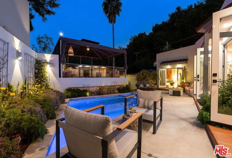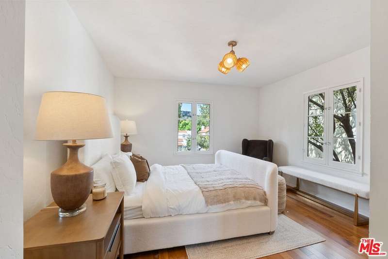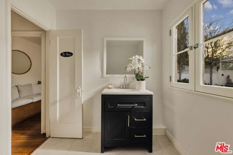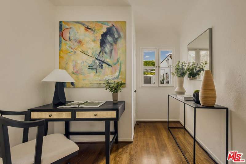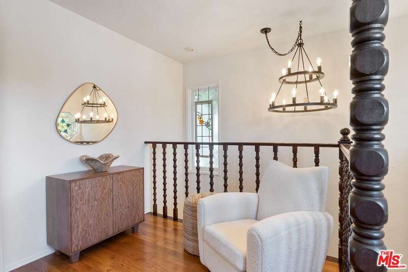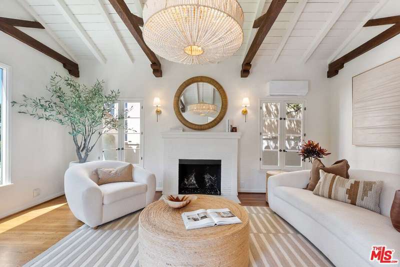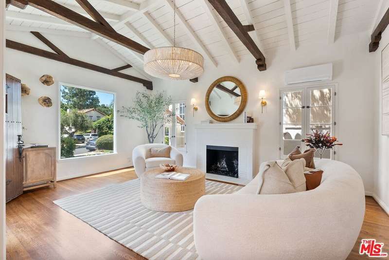 Tucked away on a serene, tree-lined street in prime Brentwood, this exquisitely reimagined Spanish residence blends the romance of old-world architecture with the effortless elegance of modern living. Recently renovated with meticulous attention to detail, every corner of this home tells a storyone of sophistication, warmth, and enduring charm. A private, sun-kissed courtyard welcomes you into a world of curated beauty, where arched doorways, hand-hewn wood-beamed ceilings, and a grand fireplace anchor the formal living room in classic character. A sweeping picture window frames verdant views of the front garden, bathing the space in natural light and offering a seamless connection to the outdoors.Designed for both intimate gatherings and elevated entertaining, the formal dining room flows gracefully into a chef's kitchen outfitted with top-tier stainless steel appliances, custom cabinetry, and an inviting breakfast nook illuminated by morning sun.The first floor is completed by a cozy guest suite with en-suite powder room, a fully appointed bathroom, a versatile den or reading room perfect for quiet reflection, and a laundry room designed with both form and function in mind.Upstairs, the primary suite serves as a tranquil retreat, featuring a private balcony terrace, a generous custom closet, and an airy ambiance that evokes a boutique hotel sensibility. A third bedroom and beautifully styled full bath offer comfort and privacy for family or guests. The home includes new wood floors upstairs, and refinished throughout. Outdoors, discover a hidden oasis ideal for alfresco living: dine under the dappled light of a pergola-covered terrace, unwind on the open-air patio, or entertain effortlessly amid the lushly landscaped courtyard. A long driveway and detached garage with alley access provide ample parking and convenience. Located moments from the prestigious Brentwood Country Club, the Brentwood Farmer's Market, Brentwood Country Mart, and incredible shops, dining and entertainment, this home offers the rare opportunity to experience the Westside lifestyle at its finest.