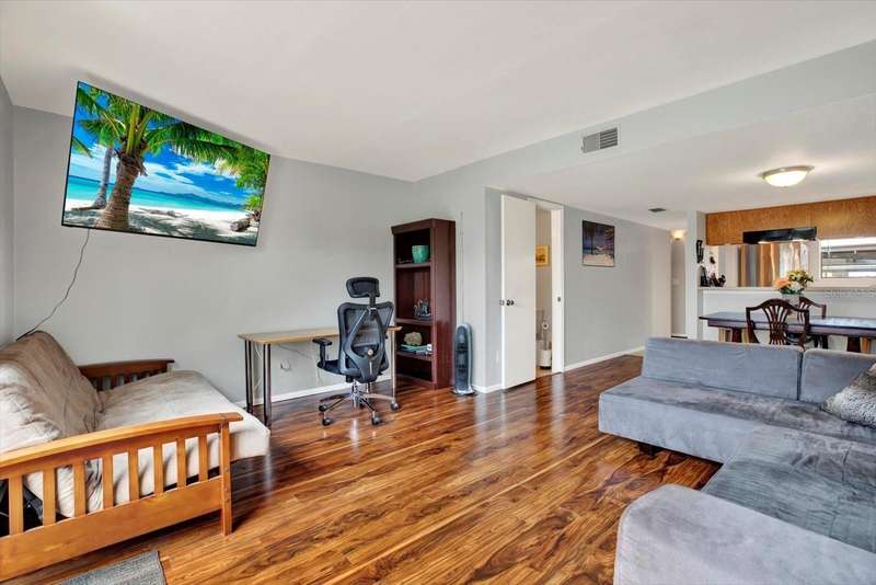 Under contract-accepting backup offers. Welcome to this beautifully updated townhome in the highly desirable Townhomes of Lake Seminole, where comfort, convenience, and Florida living come together. LOWEST PRICED TOWNHOUSE IN SEMINOLE! THIS UNIT HAS NEVER FLOODED AND FLOOD INSURANCE IS INCLUDED IN THE MONTHLY HOA DUES! This charming 2-bedroom, 1.5-bath residence has been lovingly maintained and thoughtfully upgraded throughout. The main floor features a spacious open concept living and dining area, ideal for both entertaining guests and everyday living. The kitchen offers generous counter and cabinet space, complemented by a convenient pass-through window to the living room. Step through the sliding glass doors onto your private, fenced-in patio, a perfect spot for morning coffee or evening relaxation. You'll also enjoy the bonus of a dedicated outdoor storage closet and your own private laundry area. Upstairs, you'll find two generously sized bedrooms with ample closet space and a beautifully renovated full bathroom. A NEWER A/C SYSTEM ensures year-round comfort, and a covered parking space adds to the convenience. The community offers resort-style amenities, including a sparkling pool, tennis courts, and scenic views of Lake Seminole with a brand-new dock. The HOA covers an impressive list of essentials: flood insurance, cable TV, high-speed internet, water, sewer, trash, exterior building maintenance (including roof), lawn care, and pest control, offering you true peace of mind and low-maintenance living. Enjoy a prime location just minutes from top shopping, dining, and some of the best beaches on the Gulf Coast. You’re just 1.5 miles from Seminole City Center and Seminole Recreation (Free Gym membership included), 1.7 miles from St. Petersburg College and Seminole Community Library, 5 miles to Indian Shores Beach, 6 miles to Indian Rocks Beach, 12 miles to Clearwater Beach, 13 miles to vibrant Downtown St. Petersburg, and 22 miles to Tampa International Airport.