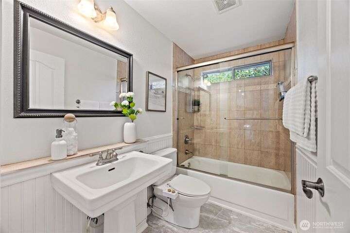 Tucked into a quiet cul-de-sac in the heart of DT Woodinville, this home offers both privacy & walkability.Sitting on generous lot, you’re just moments away from local shops, restaurants, & all that Woodinville Wine Cntry has to offer. Inside, you’ll find 4 bds & 2.25 ba across 1,780 sf. Upper lvl feat prmry ste w/cedar-lined walk-in closet, 2 add'l beds, & full bath. On main floor, LVG rm flows into thoughtfully updated kitchen w/granite counters & dining space that looks out to fully fenced yrd.The lower level includes 4th bd, utility room, & 1/2 bath - perfect for guests/office/flex use.Add'l features incl EV charger, fresh ext paint, & access to highly regarded NSD.