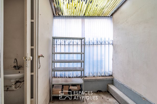 In the extension, an office of 13.33 m2 overlooking the courtyard as well as a kitchen and a shower area opening onto a covered courtyard of 4.66 m2 and a separate toilet.