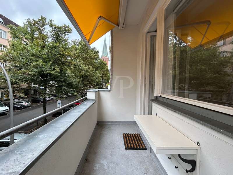Apartment near Ludwigkirchplatz In one of Berlin's most sought-after residential areas, between Fasanenplatz and nearby Ludwigkirchplatz, this apartment is located on the top floor of a well-kept apartment building. It is located in a neighborhood known for its upscale gastronomy and savoir-vivre. With a living area of approx. 82 m², this apartment offers enough space for a varied layout. The room layout comprises three generous rooms, a kitchen and a spacious shower room. A separate utility room and a checkroom accessible from the hallway complete the living comfort. Large window fronts provide excellent lighting conditions in all rooms, making the living atmosphere open, bright and inviting. With a view of the surrounding Wilhelminian-style buildings, Uhlandstrasse and Ludwigkirchplatz, the bright, sunny south-facing balcony invites you to linger. Here you can use the as-new awning if required. The modernization work that has already been carried out includes the renewal of the electrics and sanitary facilities as well as the laying of high-quality flooring, which gives the living spaces a certain elegance and timelessness. A bright fitted kitchen with its functional layout offers a small dining area right by the window. The generously designed bathroom has modern sanitary facilities with a spacious shower and faces the spacious inner courtyard. The apartment is attractive due to its location with short distances to numerous shopping facilities, cafés and the park on Ludwigkirchplatz, which is within walking distance. Excellent transport links also provide quick access to the city center and other parts of Berlin. A special feature and outstanding convenience of this apartment is that it offers a parking space, with a lockable gate to the inner courtyard. There is also a passenger elevator in the building. Two separate cellar compartments offer sufficient storage space. This apartment is ideal for couples or a small family who appreciate urban life and yet do not want to do without a quiet and upscale quality of living. Interested parties are invited to view this apartment in person to see for themselves its beautiful character and attractive location.