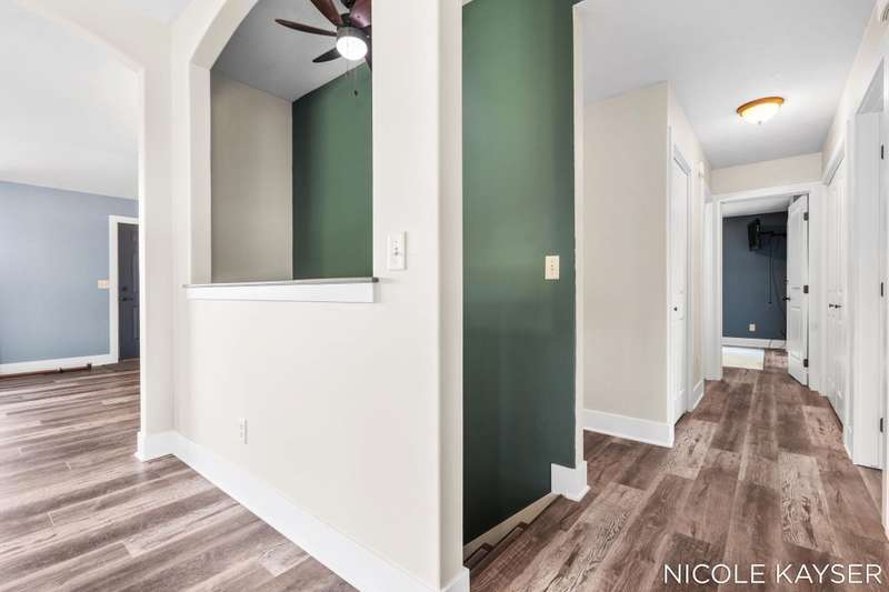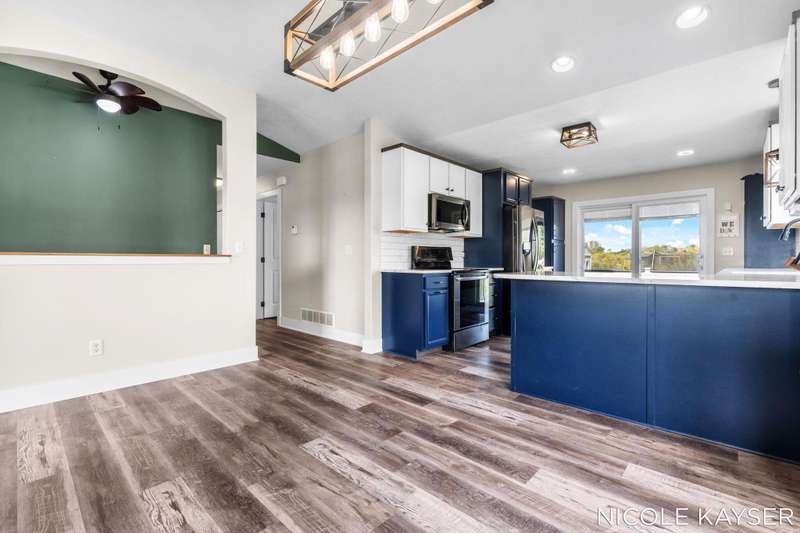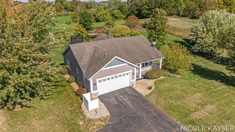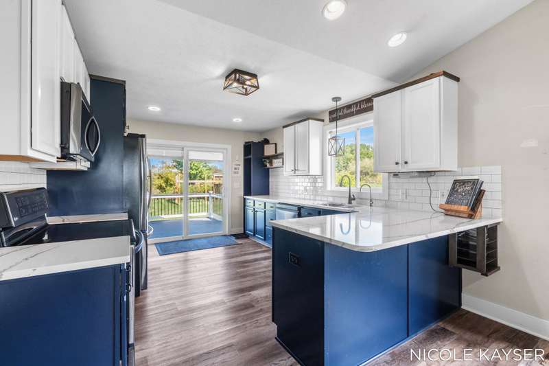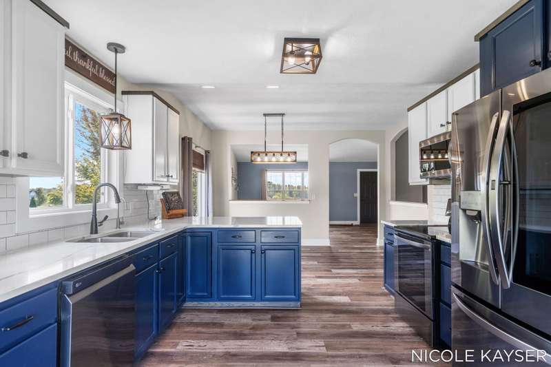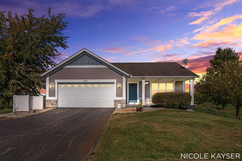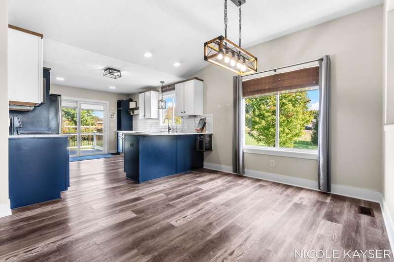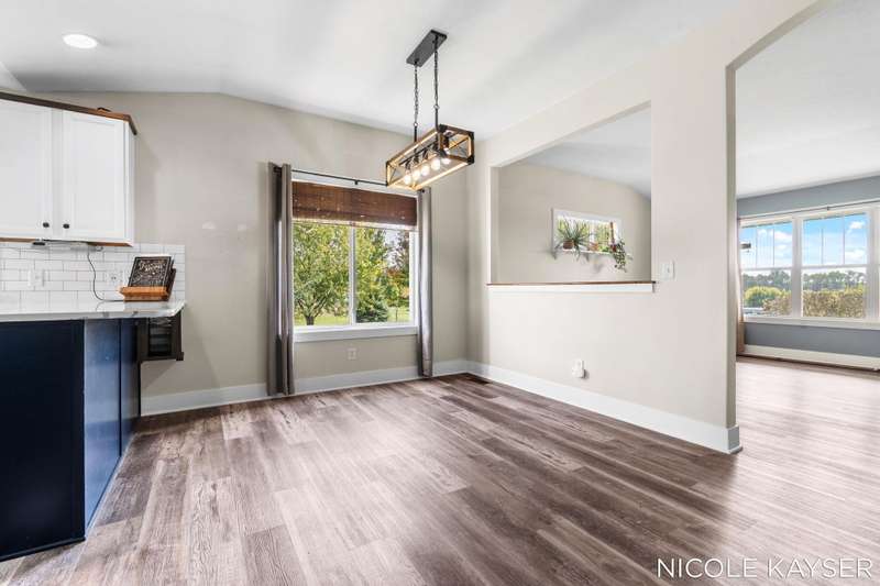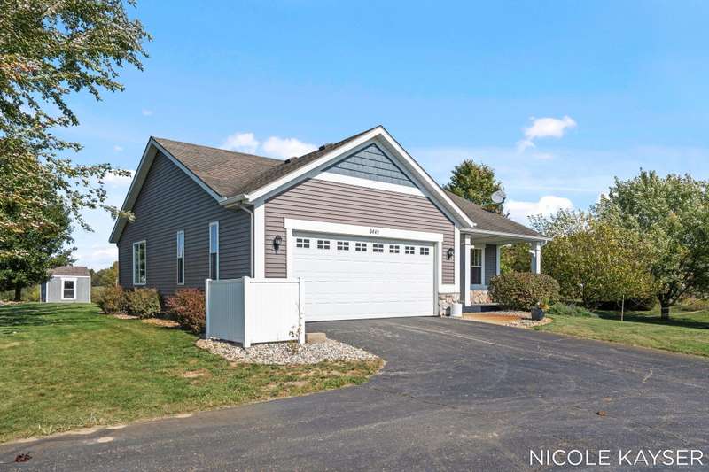 Welcome to 3449 Lone Oak Lane, where modern comfort meets peaceful country living. Nestled on over two acres in a quiet Dorr neighborhood, this beautifully maintained ranch offers the perfect blend of space, style, and functionality. The updated kitchen features bold navy cabinetry, quartz countertops, stainless-steel appliances, and subway tile backsplash, flowing seamlessly into the open living and dining areas with tray ceilings and arched details. The finished daylight basement adds two bedrooms, a full bath, a large laundry room, and a spacious family room. Enjoy coffee on the new deck overlooking scenic countryside views or take advantage of the 30x40 pole barn for hobbies or storage. An ideal location between Holland and Grand Rapids make this home the perfect mix of convenience and tranquility.