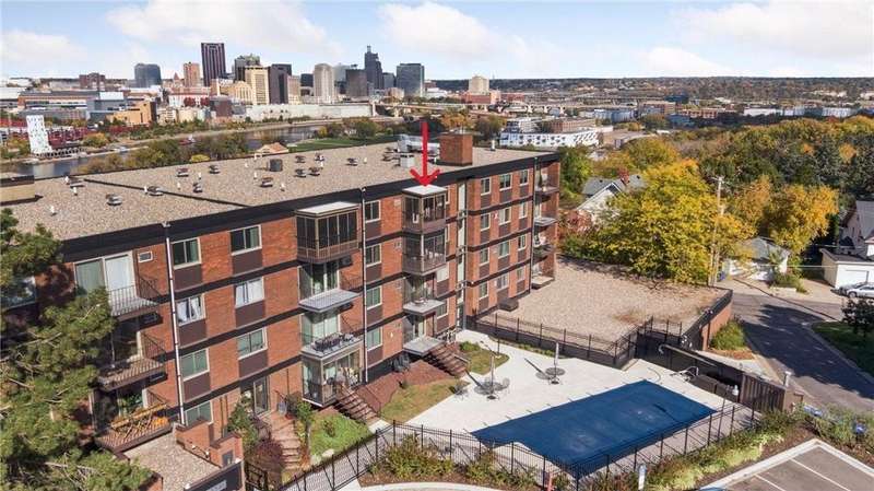 Dreaming of low maintenance condo living? Welcome home. Whether you’re a first-time buyer, downsizing, a snowbird, or simply ready to simplify life and let someone else handle the exterior work, this beautifully renovated building makes it easy. This bright, freshly painted condo features an updated full bath, a spacious bedroom with walk-in closet, central air, a storage unit just down the hall, and a 3-season porch wrapped in windows to capture the southern exposure. Enjoy an assigned heated underground parking space and a full suite of community amenities including a pool, gardens, community room/guest suite, and more. For peace of mind, the building has just undergone an extensive renovation making this truly turnkey for years to come. From the boiler system to the roof, the pool to the garage, all common areas and the parking lot, plus the newly completed community room and guest suite, every major element has been addressed so you can focus on living, not maintaining. The building showcases stunning views of the Mississippi River and the St. Paul skyline, while this unit overlooks the pool and community gardens. All of this in a prime location near trails, dog parks, and with quick access to freeways and the airport. Effortless living begins here.