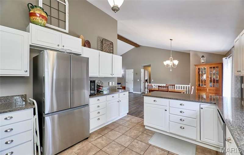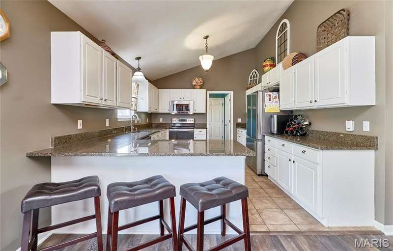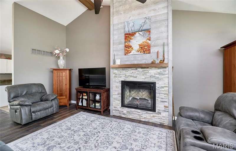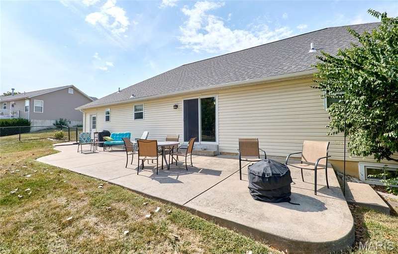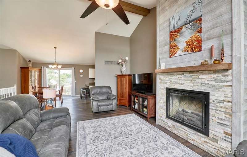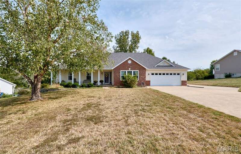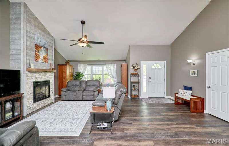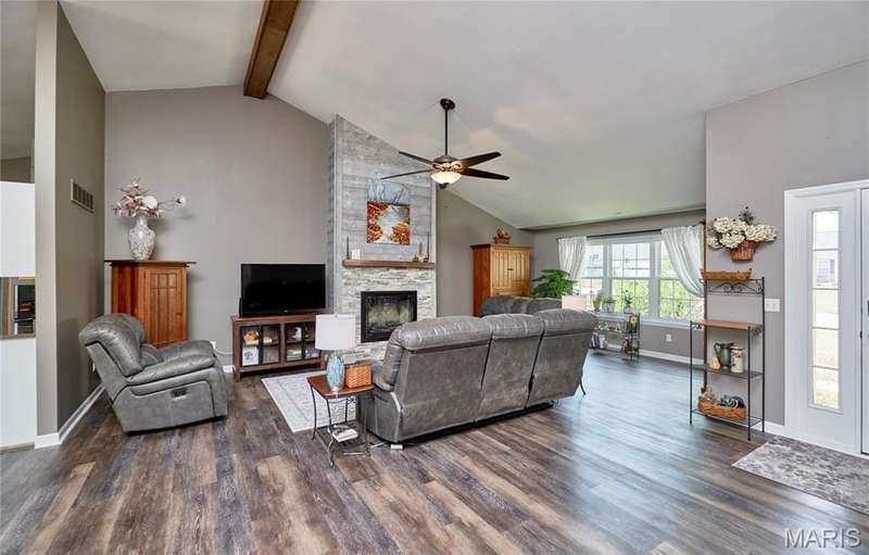 Impressive 1736 sq ft ranch style home with an abundance of upgrades just hit the market. Beautiful mature landscaping welcomes you to the expansive covered porch. Be warmly welcomed to the bright and open main living area embellished with newer low-e windows, beautiful newer floors, floor to ceiling fireplace, and wood beam. Dining area large enough to accommodate a sizeable table. The kitchen offers an extensive amount of granite counters and cabinetry, breakfast bar, some newer stainless appliances and ceramic tiled floors. The refrigerator and washer/dryer are included in the sale. Primary bedroom offers space for king bed and large furniture with walk in closet. Primary bath recently updated to include double vanity and gorgeous walk-in shower. Fabulous entertaining space in the finished lower level with wet bar, additional room perfect for office or additional guest, full bath, and ample storage. Delight in the oversized drive and oversized garage with additional parking pad that will accommodate a boat or RV. Fenced back yard with massive patio for your enjoyment. Conveniently located too so much! This may be the perfect fit to what you have been looking for.