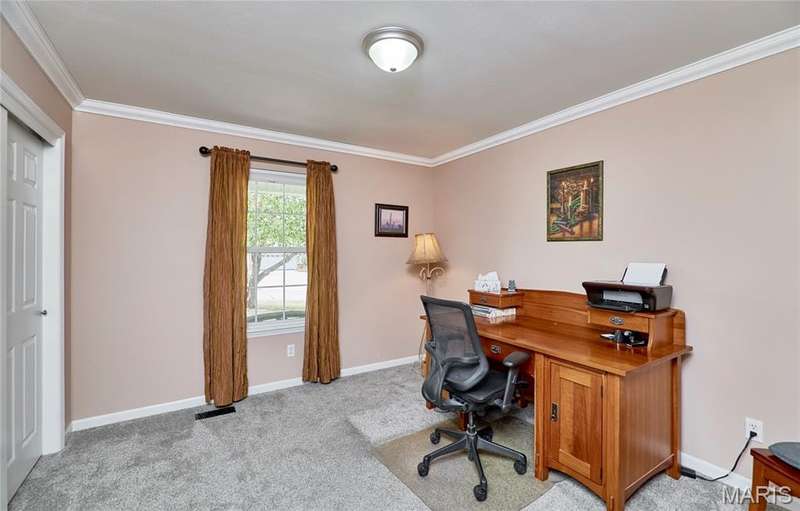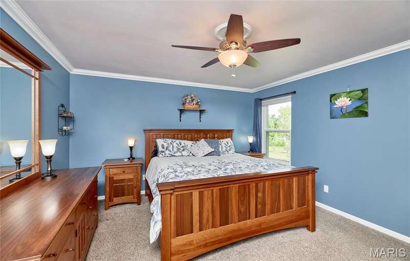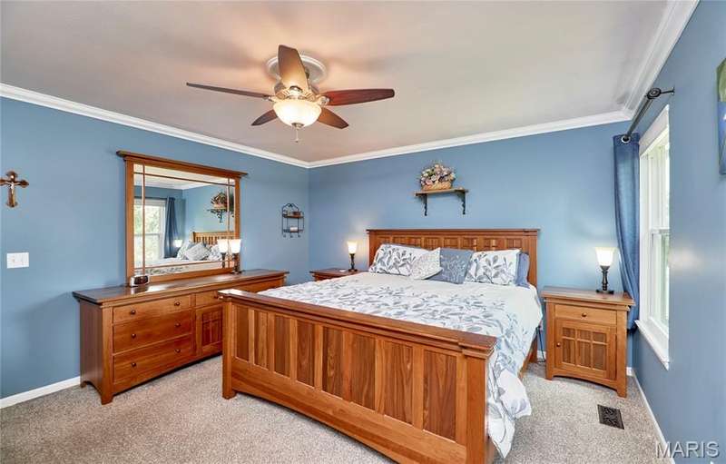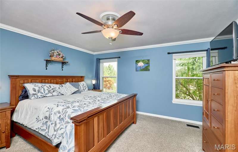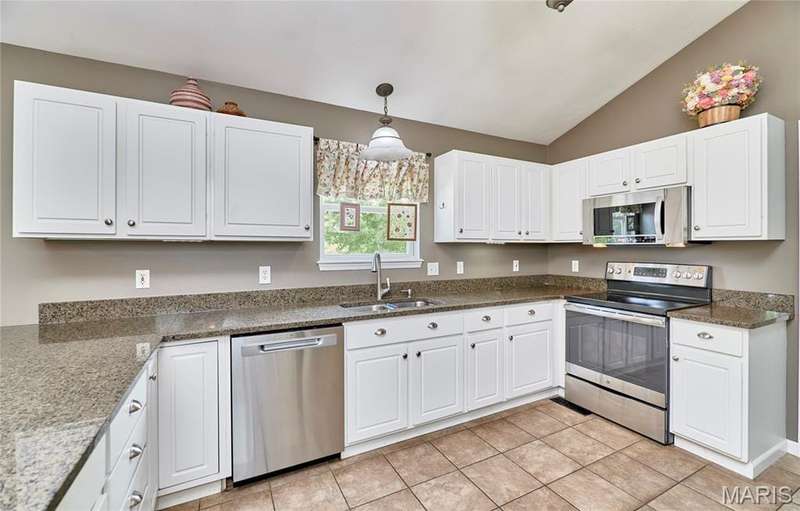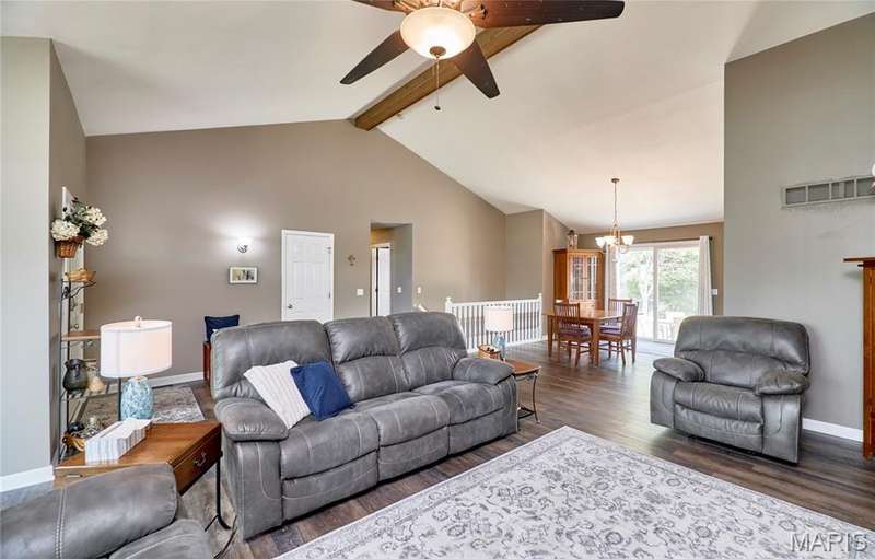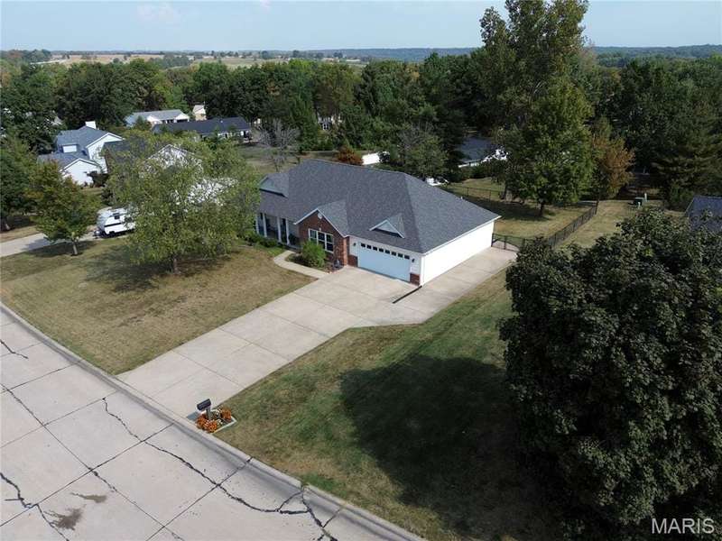 Impressive 1736 sq ft ranch style home with an abundance of upgrades just hit the market. Beautiful mature landscaping welcomes you to the expansive covered porch. Be warmly welcomed to the bright and open main living area embellished with newer low-e windows, beautiful newer floors, floor to ceiling fireplace, and wood beam. Dining area large enough to accommodate a sizeable table. The kitchen offers an extensive amount of granite counters and cabinetry, breakfast bar, some newer stainless appliances and ceramic tiled floors. The refrigerator and washer/dryer are included in the sale. Primary bedroom offers space for king bed and large furniture with walk in closet. Primary bath recently updated to include double vanity and gorgeous walk-in shower. Fabulous entertaining space in the finished lower level with wet bar, additional room perfect for office or additional guest, full bath, and ample storage. Delight in the oversized drive and oversized garage with additional parking pad that will accommodate a boat or RV. Fenced back yard with massive patio for your enjoyment. Conveniently located too so much! This may be the perfect fit to what you have been looking for.