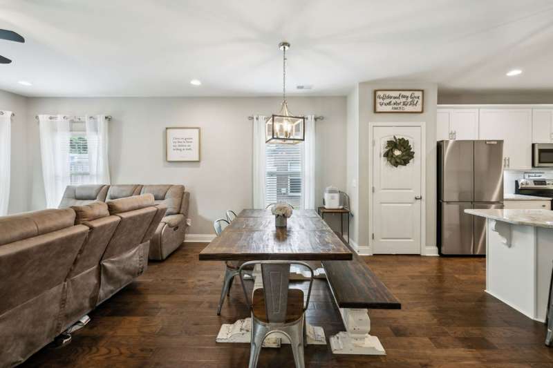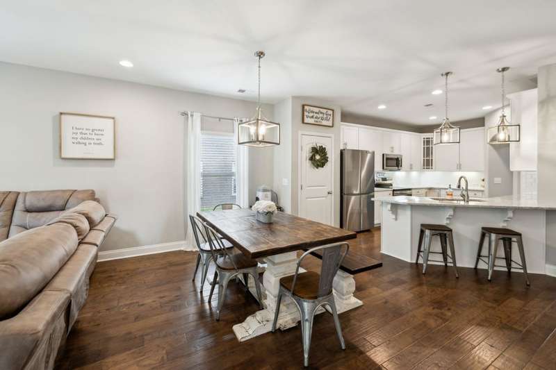 Don't miss this beautiful, upgraded 4 bedroom, 3.5 bath home in desirable West Lebanon, offering 2785 s.f. of thoughtfully designed living space. This home combines modern finishes with the privacy & space today's buyers are seeking. Enjoy an ideal location close to shopping, restaurants, & grocery stores, all while tucked away in a peaceful neighborhood that backs up to a serene tree line. Inside, you'll love the quartz countertops, large open kitchen, upgraded lighting, great storage space, tons of natural light throughout, laminate hardwood in the main living area, & new carpet with upgraded pad in bedrooms & bonus. The open-concept layout includes a spacious bonus room & second en-suite upstairs, perfect for guests or multi-generational living. The primary suite features a luxurious tiled shower & walk in closet. Step outside to your private oasis with new sod, a fenced backyard, & a covered patio. Enjoy a full compliment of amenities including a fitness center, clubhouse, pool, playground. Lender credit of 1% plus free appraisal when using Jenny Haines Douglas, Movement Mortgage.