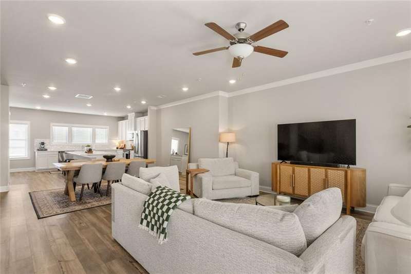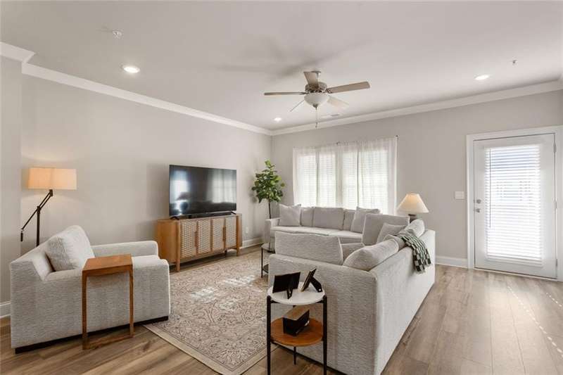 Welcome to this like-new townhome located in one of the most sought-after communities along the Chattahoochee River. Perfectly situated with quick access to major interstates, airport, West Midtown, Smyrna, and downtown Atlanta, this home offers the best of convenience and lifestyle. Step inside to discover a spacious open-concept layout with abundant natural light, and contemporary finishes throughout. The main level features a large living room, dining area, and a modern kitchen ideal for entertaining. Enjoy morning coffee or evening sunsets from the private deck or front porch. The upper level offers a generous primary suite with a walk-in closet and spa-like bath, plus two additional bedrooms and one bath on the same level. On the entry level, you'll find a private guest suite or home office with its own full bath, offering maximum flexibility. The oversized 2-car garage provides ample storage and parking. Nestled in a vibrant live-work-play community, you'll have direct access to scenic walking and biking trails, a dog park, community pool, and an open-air amphitheater. Stroll to restaurants, brewery, and more, all just steps from your front door. Don't miss your chance to live in this incredible location that blends nature, convenience, and modern comfort.