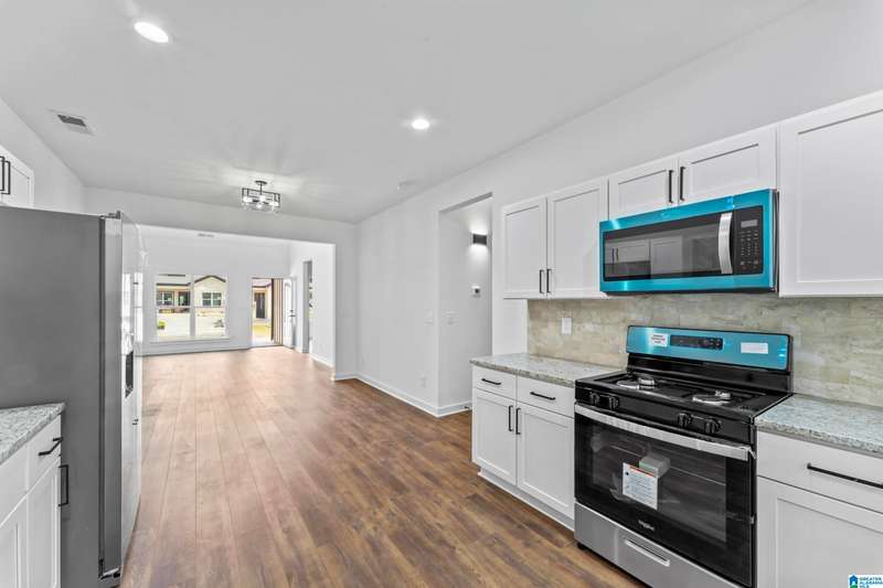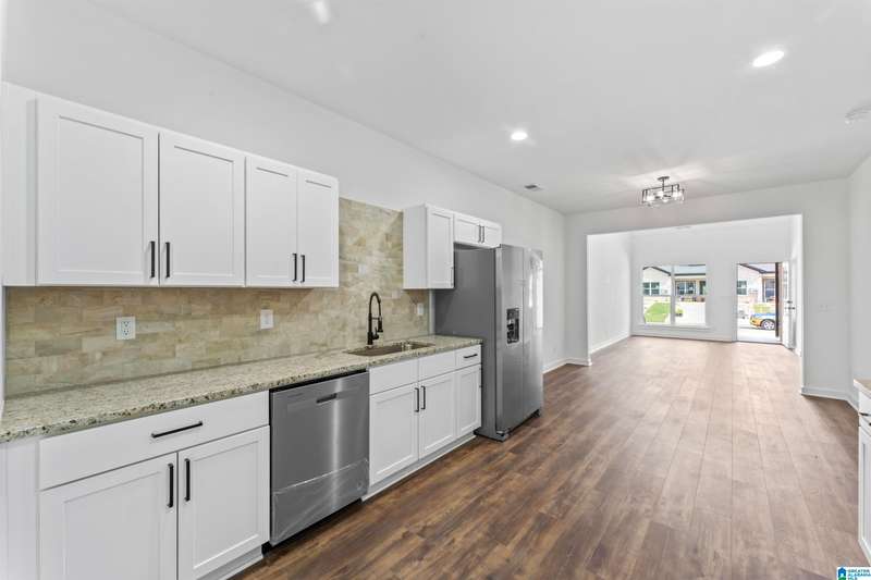 Brand new one level townhomes in Cottages of Saratoga in Calera with tons of upgrades! 147 Winners Circle provides modern, streamlined-living with minimal maintenance. You'll immediately notice the spacious driveway, private front porch and brick exterior. The ceilings are 9ft+ and there's stunning hardwood laminate floors and tile throughout. The ample natural light is accented by stunning designer lighting and neutral tones. In the kitchen, there's granite countertops, a tile backsplash and stainless steel Whirlpool appliances--gas stove, microwave and FRIDGE included. In addition, there's a brand new Whirlpool washer and dryer set included. All 3 bedrooms are fantastic spaces outfitted with great storage. BOTH bathrooms have granite countertops and oversized tile showers. There's dual vanities in the primary, private water closet, and additional storage. Step outside to your backyard with private patio space and additional storage closet. Schedule your showing today!