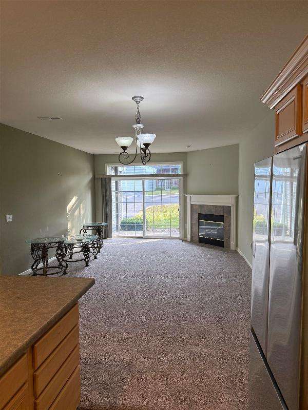 Patriot Hill Condominium!! Ranch style unit with a wooded view. 2 bedrooms, 2 baths in great condition. Maple cabinets, new appliances, gas fireplace with painted mantel, custom shelving units in all closets, new carpet and 9' ceilings. Walk in unit directly from garage that has pull down stairs in the ceiling for extra storage.