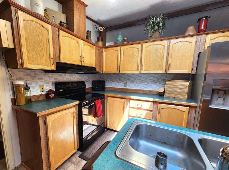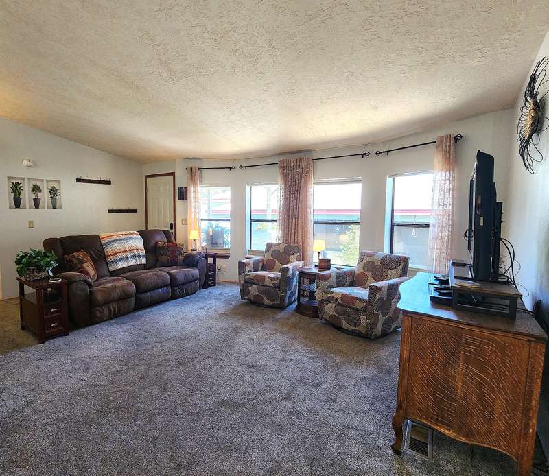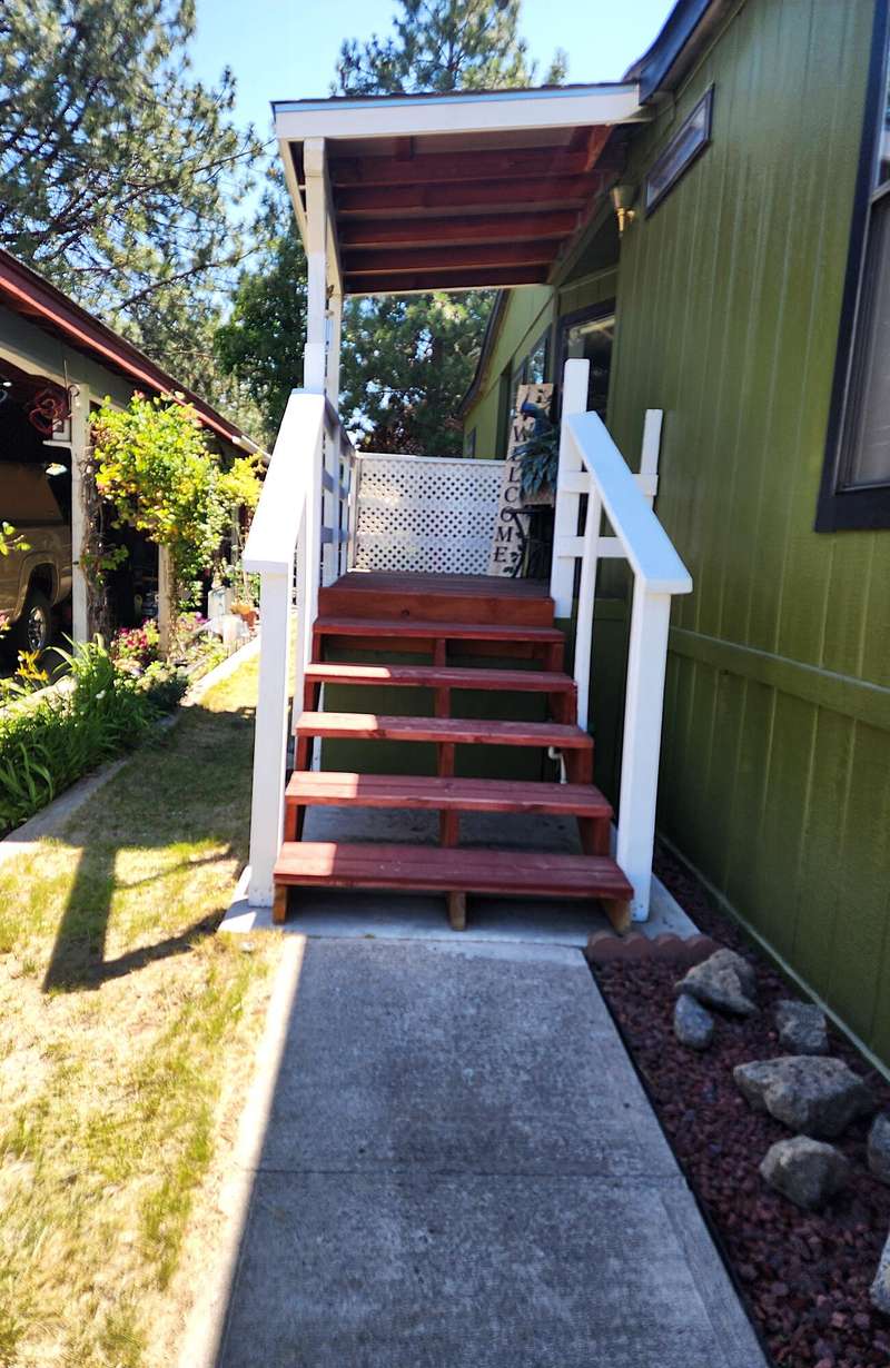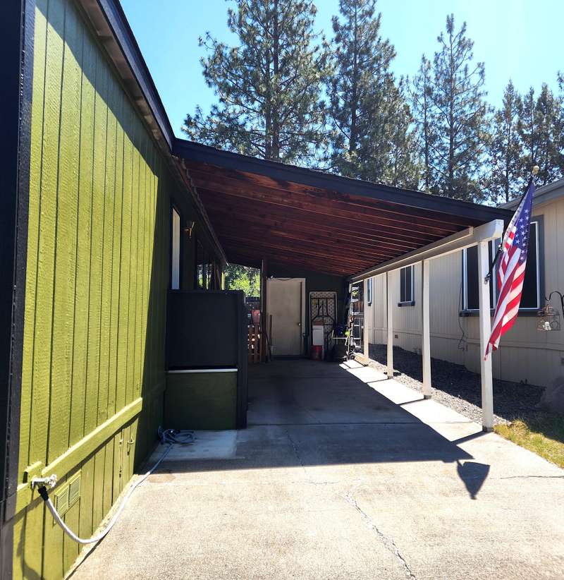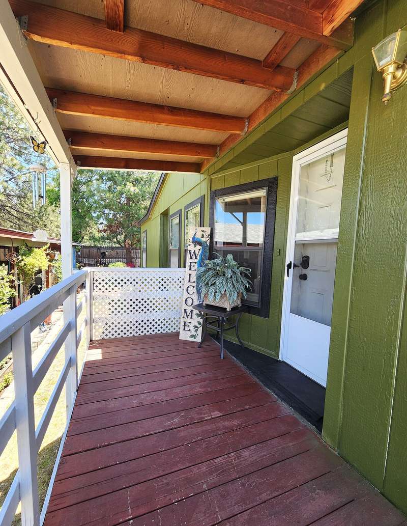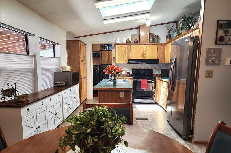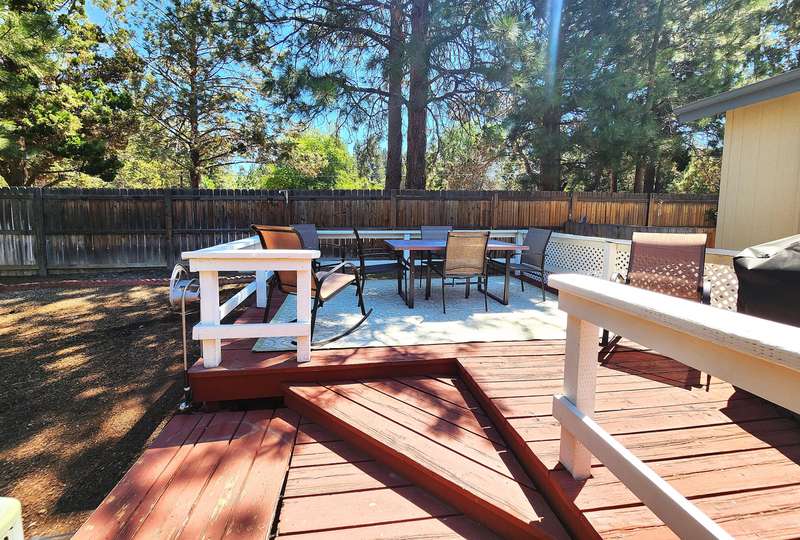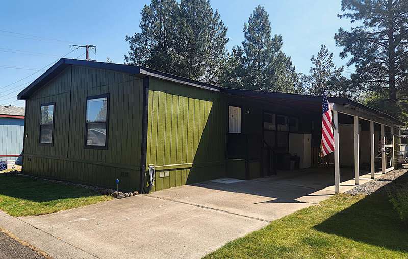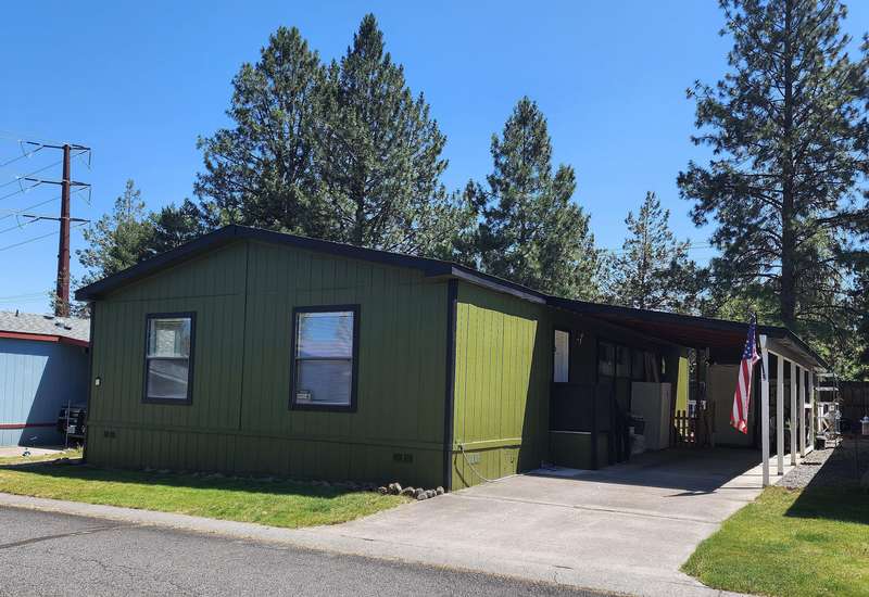 Terrific home in desirable 55+ Suntree Village in Bend. Efficient floor plan, vaulted ceilings, and freshly painted exterior. Kitchen boasts generous storage throughout and island with double sink. Dining area has built-in storage and cute display space. Large primary suite with double vanities, lots of storage, and walk-in-shower. Super cute, fenced backyard with deck and planter box. Deep carport with storage shed. Close to Larkspur Community Center. Space rent is $599/month and includes water, sewer, garbage, debris pick-up, clubhouse, and street snow removal. Come check out this amazing home!