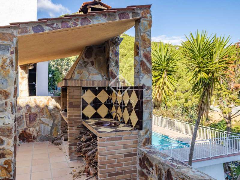 Exclusive House of Over 340 m² in Cabrils, Renovated in 2015 with Stunning Sea Views This exceptional property is distributed over two floors and features a spa, two independent kitchens, two spacious living rooms with fireplaces, a guest toilet, three bathrooms, six bedrooms, a wine cellar, a storage room, and a tourist license. The house is designed to accommodate two families, as the floors are connected by an internal staircase and a door that provides maximum privacy. Additionally, each floor has its own separate exterior access, allowing the property to function as two independent homes. The exterior boasts a landscaped area with a plot of nearly 1,000 m², an 8x4 swimming pool, a built-in barbecue with a porch, a chicken coop, a vegetable garden, and breathtaking open views of the mountains and the sea. It also has a natural water well used for automatic irrigation, the pool, and the jacuzzi. The house is equipped with air conditioning, centralized natural gas heating with independent thermostats on each floor, 600 Mbps fiber optic internet, and an alarm system. Contact us for more information or to schedule a visit.