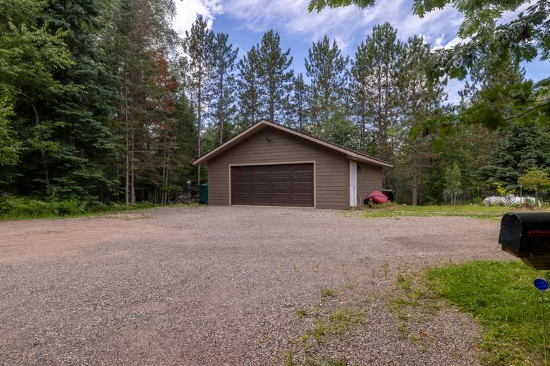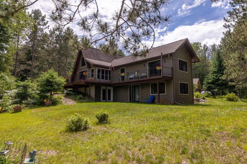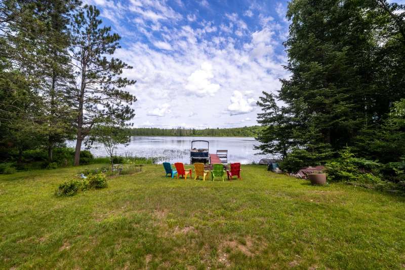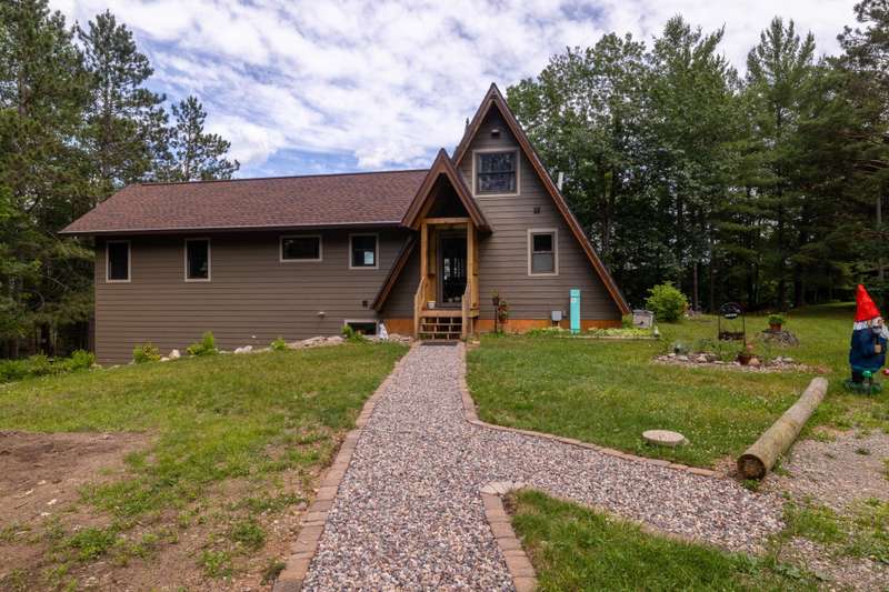 Welcome to Campfire Lane on Oneida Lake in Harshaw WI--where privacy, beauty, and recreation meet. This iconic A-frame was fully renovated with a stunning addition in 2023. Set on 3.71 acres with over 450 ft of frontage, this 3BD/2BA this home features floor-to-ceiling updates inside and out, including maintenance-free siding and expansive lakeview maintenance free decking. Enjoy a spacious loft for addition sleeping , office, reading area, walkout lower level, and breathtaking views with no homes or piers in sight--just woods, water, and wildlife. A detached 2-car garage offers convenience, and a walking path that goes across a small stream and bridge, a "she shed" and viewing area await. Oneida Lake connects to Hancock Lake and is close to the Bearskin Trail, area resorts, and Rondella Ranch. Whether you seek serenity or outdoor adventure, this property delivers.