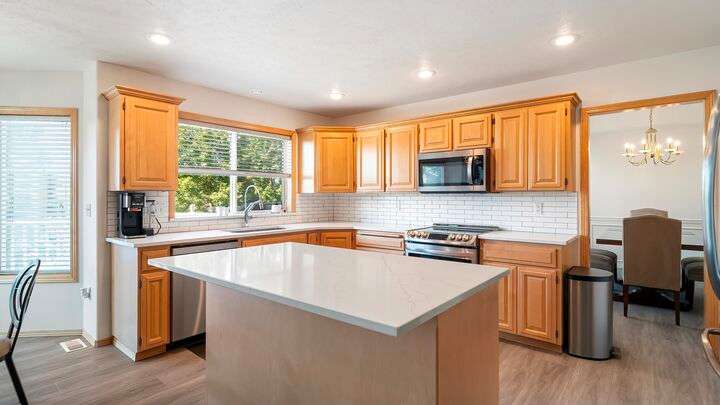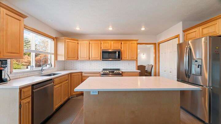 Beautiful home in a great area of North Spokane. Outstanding kitchen with quartz countertops, stainless steel appliances, tons of natural light and direct access to amazing deck and backyard. Beautiful primary suite with large shower, double sinks, jetted tub and walk-in closet. Open and inviting floor plan that you will love as soon as you enter this home. Downstairs family room that could have multiple functions at the same time. 5-bedrooms, 3.5 bathrooms, Gas Heat (furnace new in 2020), central AC (new in 2020), hot water tank new in 2023, new roof in 2021, new exterior paint done in 2020. Updated kitchen in 2024 with quartz countertops, backsplash and flooring. Very close to great schools, shopping and services. This home has a lot to offer!!!