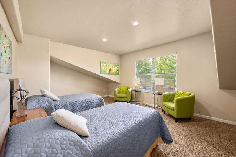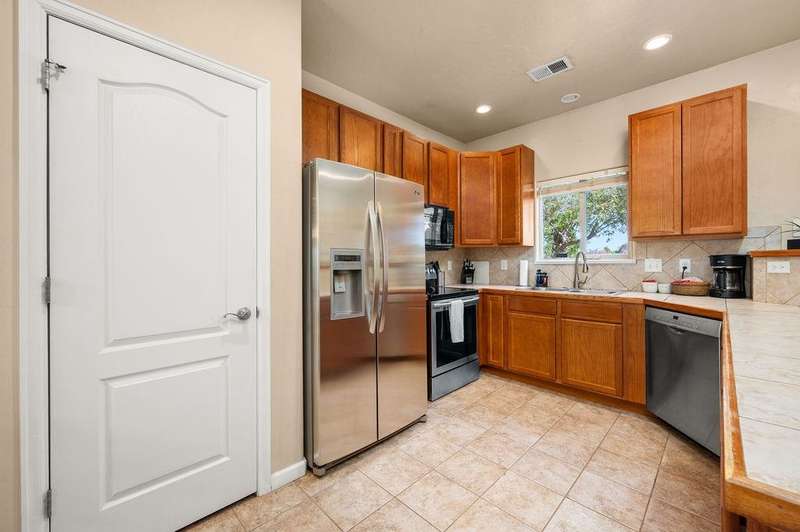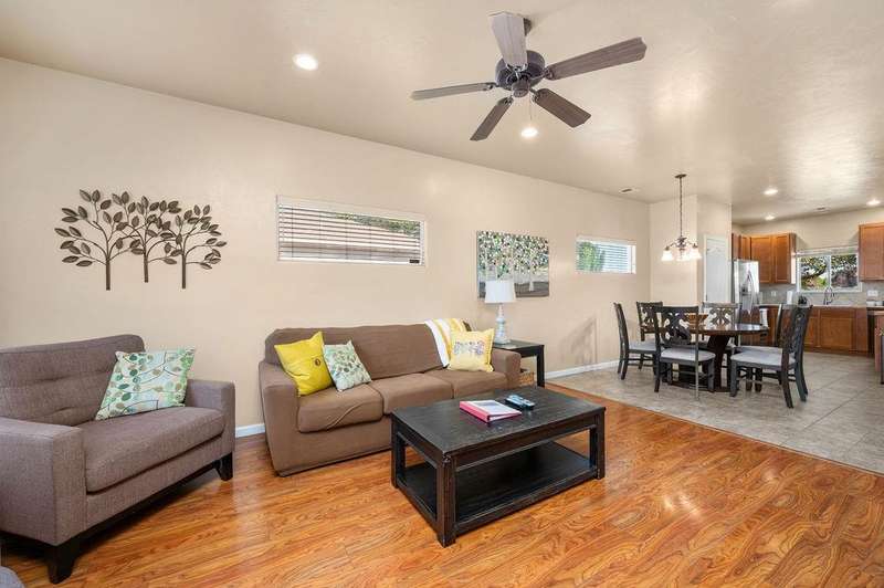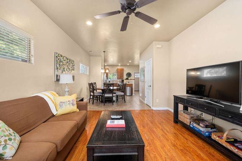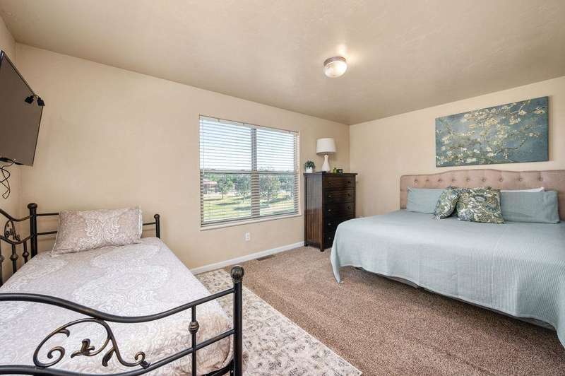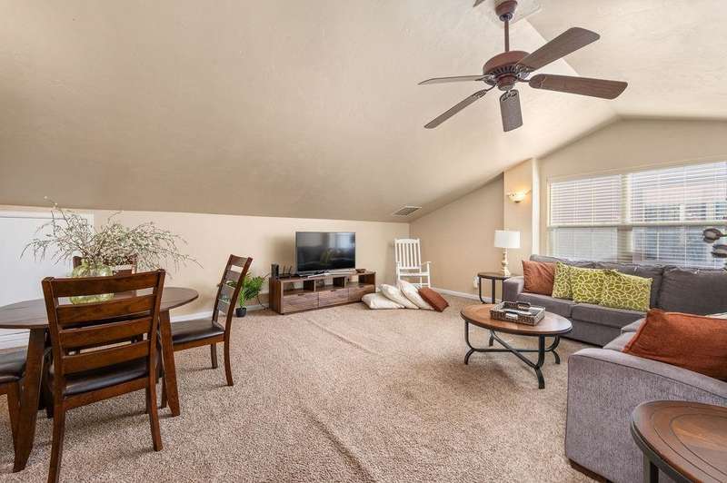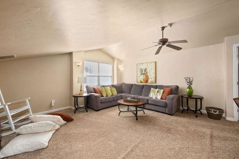 Welcome to this inviting and well-designed 4-bedroom, 2.5-bath home, perfectly positioned on a low-maintenance lot in a desirable community. With its timeless stucco exterior and an attached 2-car garage, this home offers excellent curb appeal and long-lasting durability. Step inside to discover a functional and flexible layout tailored for modern living. The main level features a comfortable living space, ideal for both everyday relaxation and entertaining guests. The spacious primary bedroom is also located on the main floor, offering added privacy and convenience. Complete with an en-suite bath and generous closet space, it’s the perfect retreat after a long day. Upstairs, you'll find three additional bedrooms and a large separate family room — perfect for a second living area, home theater, game room, or play space. Whether you need extra room for family, guests, or a home office, this upper level provides the flexibility to meet your needs. One of the home’s standout features is its peaceful backyard setting, backing directly to the scenic trails and open space of Canyon View Park. Enjoy morning walks and year-round access to nature — all just steps from your door. This home is situated in a low-maintenance community where the HOA maintains the front yard and offers RV storage, for an additional fee, giving you more time to enjoy the lifestyle you deserve without the hassle of constant upkeep. Don't miss your chance to own a move-in ready home in an unbeatable location close to parks, schools, shopping, and recreational opportunities. Whether you're looking for your forever home or a smart investment, this property checks all the boxes!