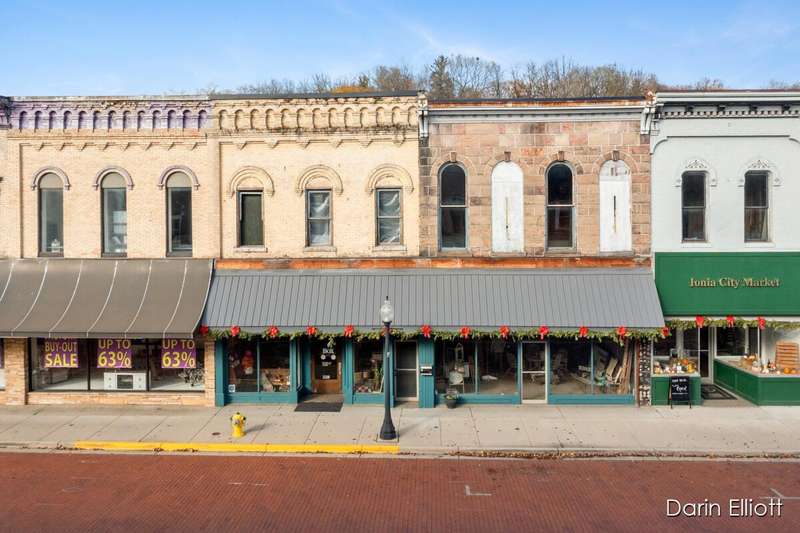 Red Brick Investment opportunity in Historic Downtown Ionia. Store front, garage area, Full semi-finished/useable basements, and Full upper level with room for apartments. Beautiful store front with original hardwood floors, tin ceilings, and exposed brick throughout. His/Her bathrooms, garage area access with bathroom. MSHDA Grant programs available for the upper level. Current owner just had a brand-new roof installed that comes with a 20-year transferrable wrty. New insulation, gutters, and both front and rear exteriors have been completely restored. New furnace 2016. Hurry to put your name on a piece of Ionia history! Adjacent building 326 W. Main St also available and can be purchased separate or together.