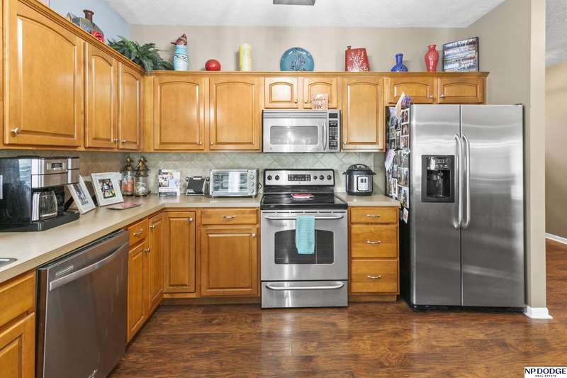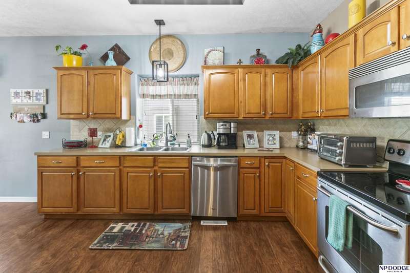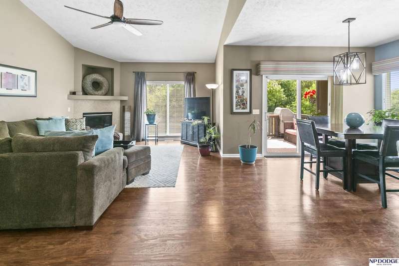 Easy living starts here-with $5,000 toward your closing costs or moving expenses, plus a 2-10 Home Warranty! This carefree ranch-style villa offers an open, inviting layout with vaulted ceilings, warm flooring, and a dine-in kitchen with breakfast bar that flows into a cozy living room with fireplace. Main floor laundry and a peaceful primary suite with walk-in closet, dual sinks, tub, and separate shower make day-to-day life a breeze. The finished walkout lower level adds a spacious rec room, large 3rd bedroom, 3/4 bath, and plenty of storage. Step onto the deck and take in the view-no rear neighbors, just trees, trails, and the calm of nearby park and pond. HOA handles lawn care, snow removal, sprinklers, and trash. AMA-come see how easy home can feel!