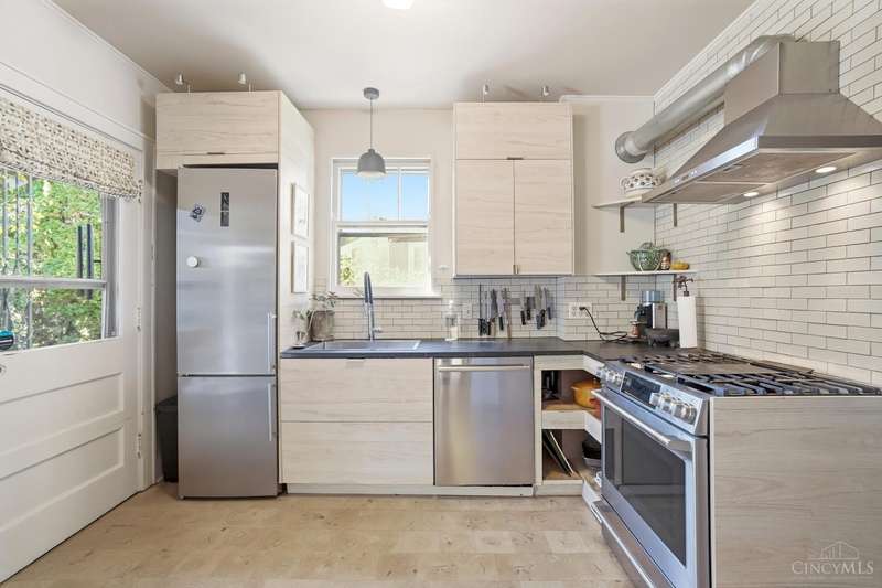 This darling Craftsman bungalow lies on a peaceful tree-lined avenue in Northside not far from Millionaire's corner, Jergens Park, Parker Woods Nature Preserve & all of the shopping & entertainment Hamilton Avenue's business district has to offer. Move right in & enjoy the perfect blend of historical charm & modern conveniences - refinished original hardwood floors & millwork + 2024 HVAC. A sprawling covered front porch greets your guests while an inviting living room welcomes them in featuring a decorative Rookwood fireplace. The 1st floor also includes an updated full bath & formal dining room, leading to the renovated gourmet kitchen with soapstone counters, end grain wood flooring & a farmhouse sink, that opens onto an impressive outdoor entertaining area. Upstairs you'll find 2 comfortable bedrooms & a designer bath with period appropriate finishes. The LL includes laundry, 2 smaller rooms & 1 larger with plenty of room for storage & utilities - ready to appoint as you see fit!