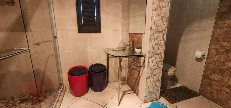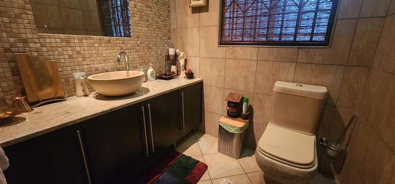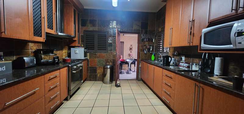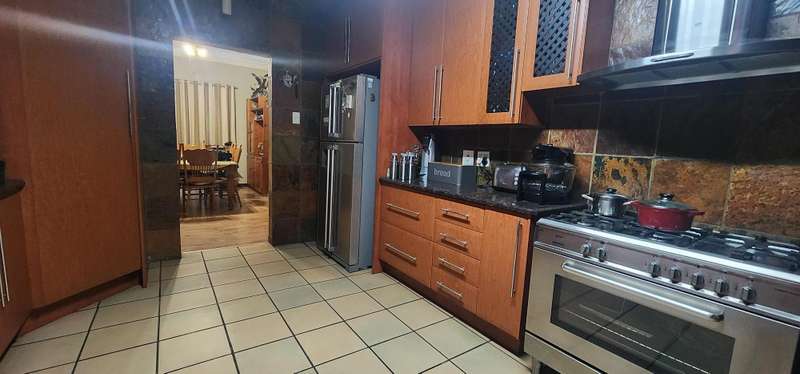 This beautiful home has the following features: 4 Spacious bedrooms with built in cupboards with ample space. 2 Modern bathrooms with showers and baths A beautiful lounge with a fire place and separate dining room, as well as a study The kitchen is equipped with melamine cupboards all with granite tops and extractor fan. The entertainment are offers a pool, jacuzzi, lapa with braai and bar. Double garage Call me now to view