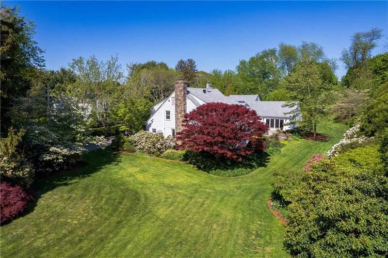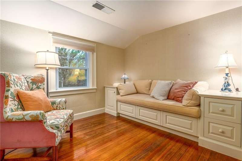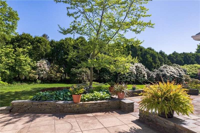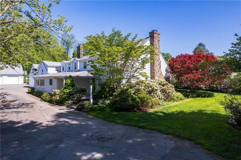A Private Colonial Retreat nestled in the desirable Bristol Highlands. This handsome vintage Colonial offers timeless charm & exceptional privacy on a 1 ac park like setting filled w/mature landscaping & beautifully curated gardens. Built in 1924 with thoughtful 1956 mid century updates, blending classic elegance w/ modern comfort. The gross living area is approx 5286 sq. ft. plus a new guest space and Rec RM w/versatility for extended family & entertainment. Inside, the home is rich in vintage character and warmth. A gracious combined Fam RM and formal DA features arched clam shell built-ins, shiplap paneling & cabinetry, 2 FP and several French DRS opening into LR and a blue stone patio overlooking the gardens.The spacious layout incld lg EIK and Primary Suite, 3 BR, 3.5 BTH, a cozy reading rm w/built-ins and OFF. The addl. 2 car attached GAR + a separate 2-car GAR w/loft has much to offer. If you're a garden or car enthusiast, in need of a WKSP/Studio,enjoy entertaining or seeking a peaceful sanctuary w/community amenities this property has it all. Located near the East Bay Bikepath, this home provides access to a lifestyle of leisure & recreation. Residents may join the BHIA, which offers a private community clubhouse, beach, tennis courts, and dock access on Narragansett Bay. This exceptional home offers it all in a highly coveted location. A fantastic buy for a house this size in this neighborhood w/some very recent updates as of 9/2025, Seller is Motivated!
