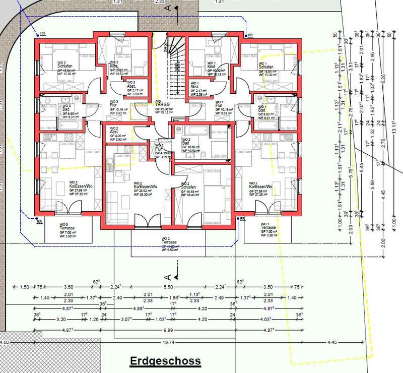 This modern 2-room apartment on the first floor offers around 68.70 m² of living space, a balanced room concept with well thought-out floor plans and high-quality furnishings. The property will be built in 2026 as a first-time occupancy in an architecturally appealing apartment building - the building is currently in the planning phase, a completed comparable property (see photos in the exposé) can be viewed on request. The sense of space is underlined by real wood parquet flooring from the standard flooring range - this is already included in the purchase price and ensures a comfortable living ambience. A generously sized storage room (per residential unit) is available on the top floor for additional storage space. Furthermore, a lockable storage room directly adjacent to the carport with a power connection for a ceiling light and socket for charging e-bikes offers additional space for your utensils. The two covered carport parking spaces located directly in front of the house are a special bonus and provide convenient parking at any time of year. The building technology meets the highest energy requirements: Modern underfloor heating provides cozy warmth, while the plastic windows with triple glazing in conjunction with a decentralized ventilation system contribute to energy efficiency and a pleasant indoor climate. Inside the building, the house will impress with high-quality doors and granite staircases (stairwell) that combine durability and practical design. The entire interior is of high quality and creates a modern and appealing living ambience. Tiles and floor coverings can currently still be individually selected by the buyer. Electricity is supplied sustainably via an 18 kWp photovoltaic system with a generous 30 kWh storage unit - a pioneering concept for contemporary living. For capital investors, the apartment is particularly interesting due to the possibility of degressive depreciation at 5%. In addition, the property is eligible for subsidies in accordance with the KfW 40 QNG standard, which guarantees attractive subsidies and pioneering energy efficiency. The visualizations of the property serve as an example and are based on a project that has already been completed. They offer a first impression of the expected quality and architectural style of the new building. For further information or a non-binding viewing, please contact us. Secure your new home now - we look forward to hearing from you!