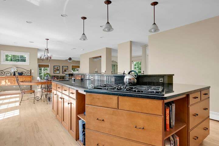Located just 5 minutes from top-rated Scarborough schools and amenities! Meticulously maintained contemporary colonial loved by the same family since it was built in 2003! Here is your chance! Spacious 4-bedroom, 2.5-bath home located on a quiet, private road in the heart of Scarborough. Offering 3,628 sq. ft. of living space, this home sits on a serene 0.73-acre lot with mature landscaping, wooded privacy, and a backyard firepit area. The open-concept main floor is ideal for entertaining and everyday living. Enjoy a large kitchen featuring maple cabinetry, granite counters, a gas range, prep sink, pantry closet, and a built-in bar with beverage cooler. The adjoining sunroom and deck offer year-round enjoyment and peaceful views of the backyard. The spacious living room features built-in shelving and a tri-sided gas fireplace. A formal dining room, dedicated office with built-ins, first-floor laundry, and mudroom with built-in bench and storage add convenience and functionality. Upstairs, the primary suite includes a walk-in closet, jet tub, tiled shower, and dual vanities. Two additional bedrooms each offer generous closets, and one has direct access to the full bath. A large flex room serves as a 4th bedroom, family room, or office. Additional highlights include maple floors (refinished in 2023), irrigation, central vacuum, built-in speaker system, whole house fan, generator hookup, dry basement with large workbench area, and attic storage. The 3-car garage includes a utility sink, and a built in-removable ramp to the basement—perfect for moving lawn equipment or ATVs. With its prime location in Scarborough, you'll have easy access to beaches, shopping, dining options, and more! Home has been pre-inspected!