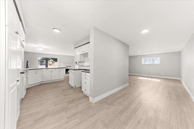 Escape the hustle and bustle of the city in this fully remodeled 4-bedroom, 2-bathroom home with a 4-car garage, situated on an oversized corner lot. The main floor offers a spacious kitchen with new stainless-steel appliances, a dining room with a cozy fireplace, a large living room, two bedrooms, two bathrooms, and convenient main floor laundry. Upstairs, you'll find two additional bedrooms and a versatile living room or rec room. Walk outside and enjoy the spacious oversized lot which is perfect for entertaining friends and family. Other features include forced air heat and central A/C. Conveniently located close to Lake Roosevelt, schools, and the Harrington golf course with easy access to the freeway.