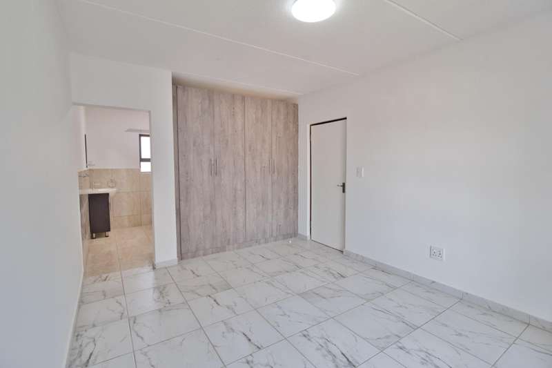 Welcome to your new home in a secure and welcoming community! This charming property offers a cozy haven with modern amenities and security features for your peace of mind. Step inside to discover three comfortable bedrooms and two well-appointed bathrooms, providing ample space and convenience for you and your family. A covered parking spot ensures protection for your vehicle, while 24-hour security and an access gate offer round-the-clock surveillance and control. The home features built-in cupboards in each bedroom, providing plenty of storage space for your belongings. The kitchen is equipped with modern fixtures, making meal preparation a breeze, while the adjacent dining area offers a perfect spot for enjoying meals with loved ones. Relax and unwind in the spacious lounge area, or step outside onto the patio and enjoy the fresh air. The paved area adds to the charm of the outdoor space, providing a low-maintenance area for outdoor activities. Electric fencing surrounds the property, providing an added layer of security. A security post ensures vigilant monitoring of the community. Don't miss out on the opportunity to make this delightful property your own, where comfort, security, and convenience converge to create the perfect home for you and your family.