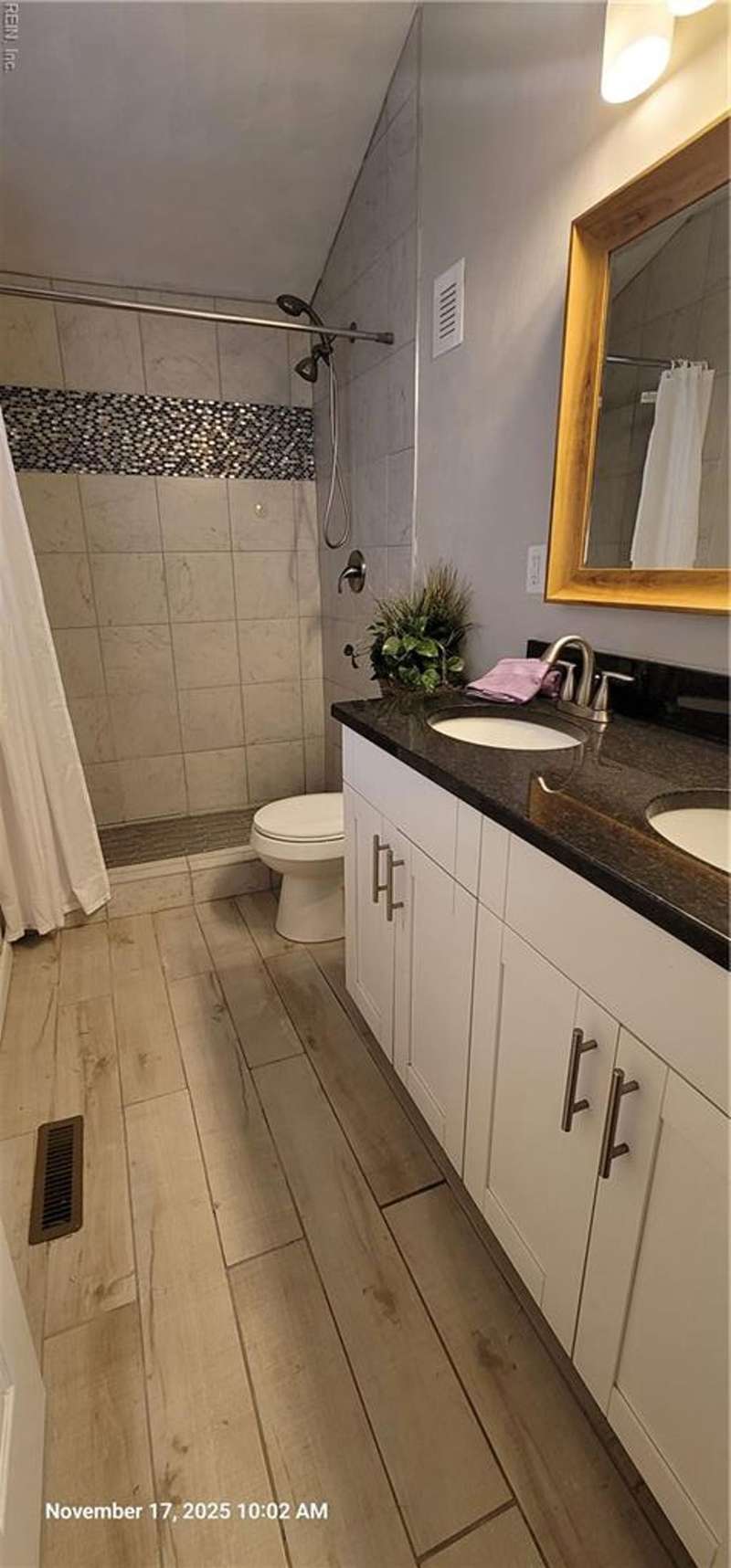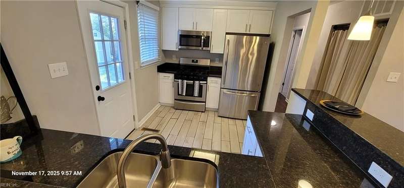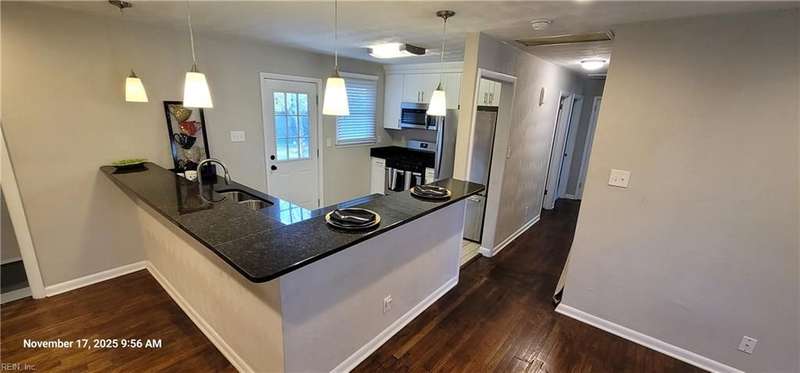 Welcome to this charming 4-bedroom, 2-bath, all-brick home that beautifully blends timeless character with modern upgrades. New carpet just installed! Fully renovated in 2017 (per previous listing), it offers peace of mind with a newer roof, windows, & HVAC. Gutters installed in 2018 (per previous listing). Inside, you'll find an inviting open layout featuring gleaming hardwood floors, recessed lighting, and a stylish kitchen equipped with stainless steel appliances, soft-close cabinetry, granite countertops, and a convenient breakfast bar. Both bathrooms have been refreshed with new vanities and tiled shower surrounds, while the spacious primary suite includes a custom walk-in closet and a luxurious en-suite complete with double sinks. Step outside to a generously sized backyard with an expansive patio?perfect for relaxing or entertaining?plus a newer 6' privacy fence surrounding most of the yard. This move-in-ready gem is truly one you won't want to miss! Make your appointment today!