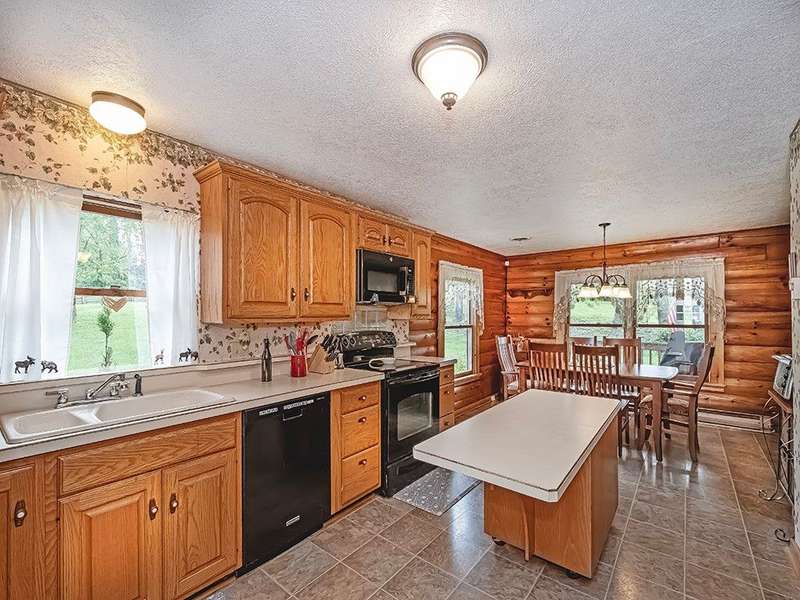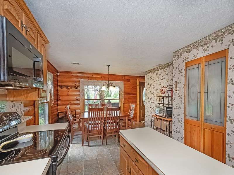 BIGGER THAN IT LOOKS! Charming 3 BR Log Home Nestled on 1.36 Country Acre, Backed by nothing but farmland! The Expansive Covered Front Porch Invites you into a Cozy Environment that says, "You. Are. Home."!!! To the left, you see the a 24x13 Living Room w/Log Burning Stove where you can curl up on the couch after a long hard day! To the right, you see the Fully Equipped Country Kitchen w/Center Island & Adjacent Dining room - Convenient for entertainment and Family enjoyment! Step out from the Kitchen/Dining room area onto the Deck & Enjoy the Peace & Quiet of Country Living! The Laundry is also located on the 1st floor. (It was previously a Half Bath & could easily be changed back for use w/Stackable W/D units.) The 2nd Level Hosts Extra High Ceilings - 3 Spacious BRs w/Ample Closet Space & a Full Bath. The Lower Level Features: A Game room w/Logburning FP, Full Bath, Den/Workout Space, Storage, 2 Car Tandem Garage & Matching Shed! (House has GAS/FORCED AIR HEAT & CENTRAL AC)