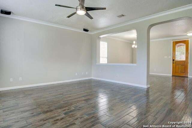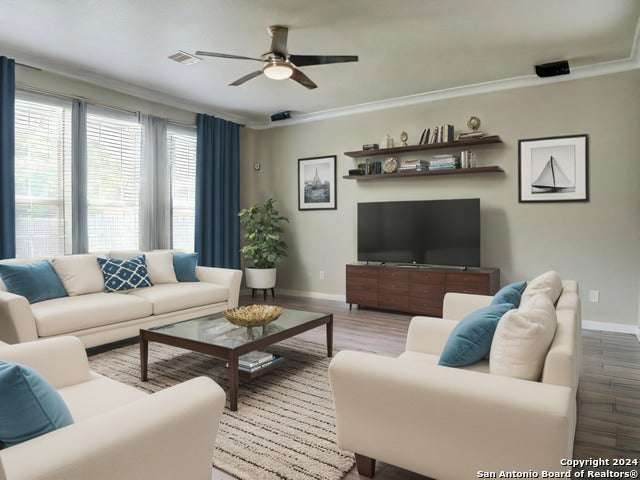 Well maintained 3 bedroom, 2.5 baths, 2-story home with brick exterior in front, and covered patio in the back. Marble counter tops in kitchen, 42" cabinets, an eat-in area and boasts plenty of counter space which includes a center island. Wood ceramic tile throughout 1st floor & 2nd floor bathrooms/laundry room and crown molding throughout. This home has a large family room and a giant master bedroom. Laundry room and all bedrooms are located on the second level. No carpet on the first floor. Pecan and lemon trees with spacious back yard. Convenient access to 1604, minutes from major theme parks, USAA, Valero, La Cantera Mall, and The Rim shopping centers.