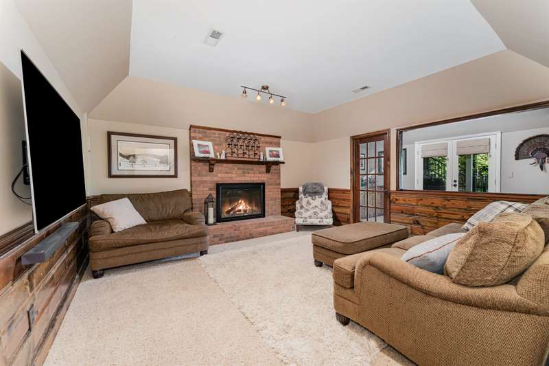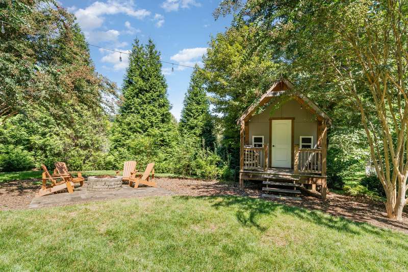 The backyard is a true retreat, complete with a cozy firepit and a charming playhouse that sparks imagination and outdoor fun. Downstairs, a finished den space with a fireplace offers a welcoming escape—perfect for movie nights, game days, or quiet relaxation. Two new HVAC systems (2020) ensure year-round comfort and efficiency, while the home’s overall care and upkeep reflect pride of ownership.