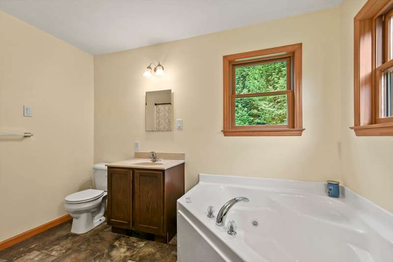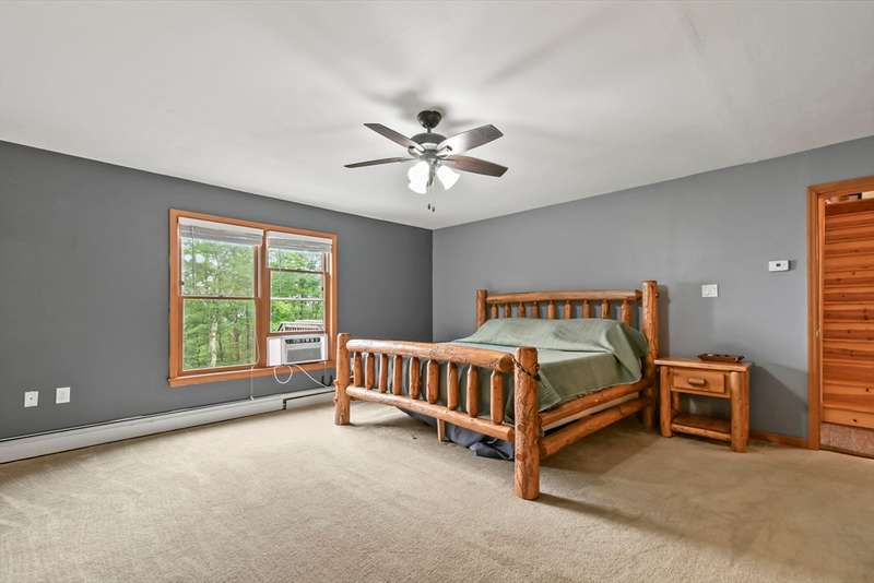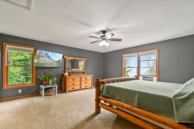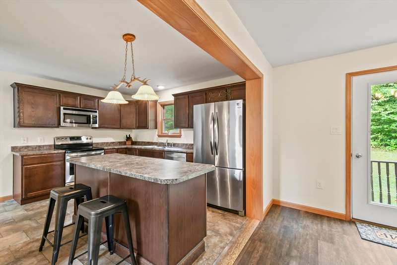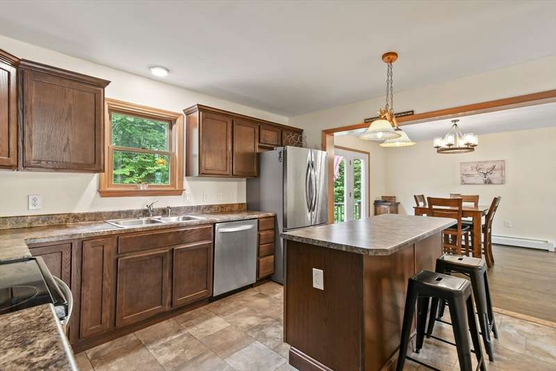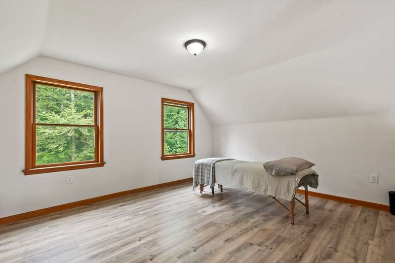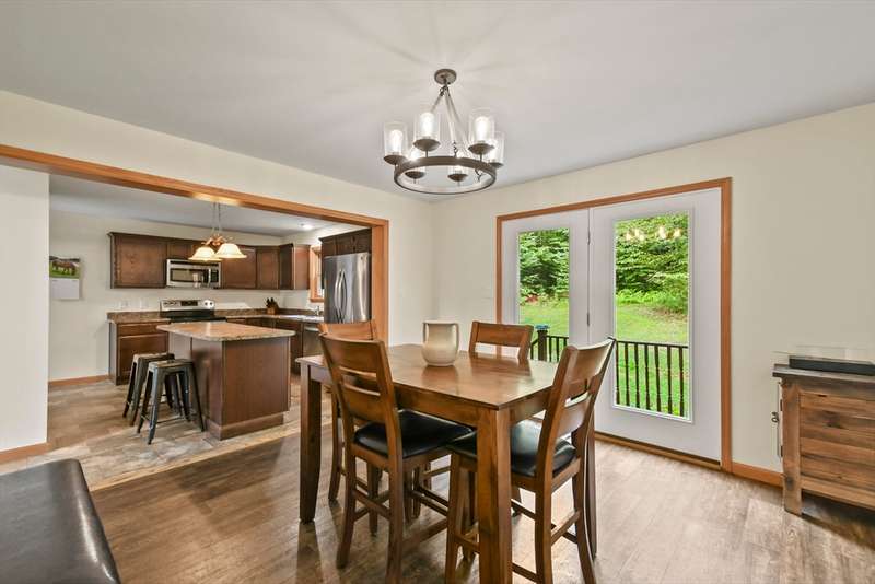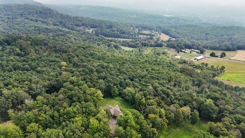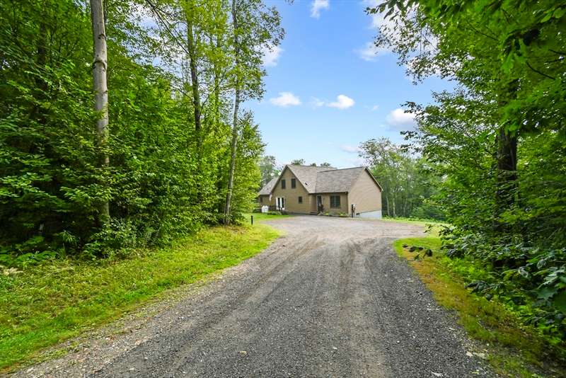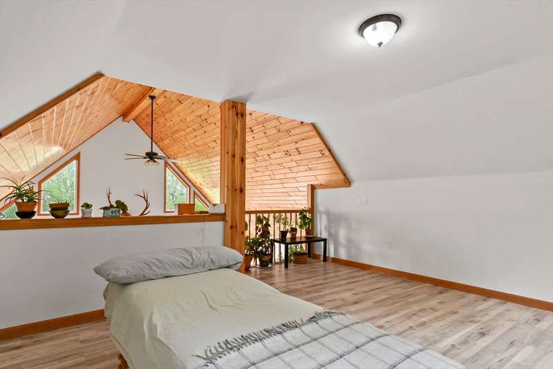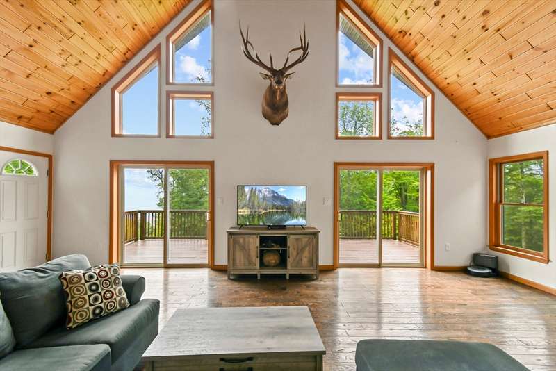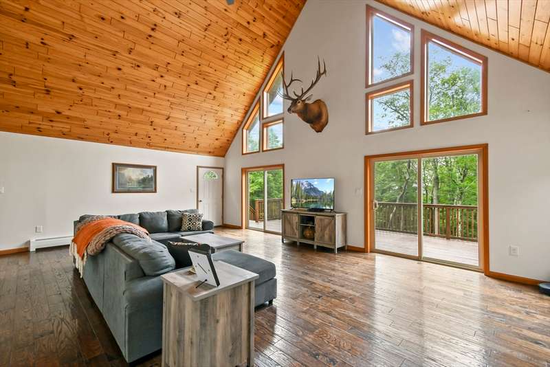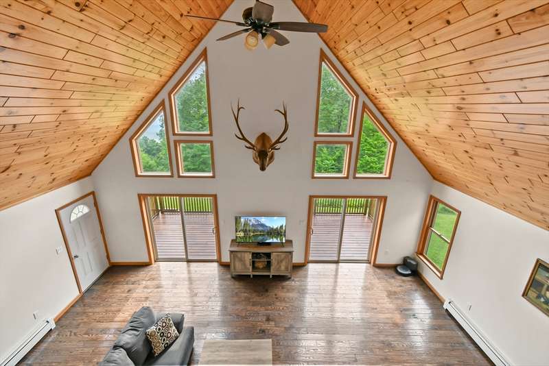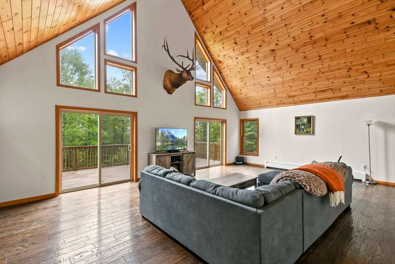 Welcome to this beautifully crafted, move-in ready chalet-style home, set on over 4 private acres with a spacious cleared backyard, wooded surroundings, and stunning mountain views. Inside, you're greeted by a welcoming mudroom and convenient first-floor laundry. The open-concept living area features vaulted ceilings, hardwood floors, and large windows that fill the space with natural light and peaceful views. The kitchen flows into the dining area and includes stainless steel appliances and modern lighting—perfect for entertaining. A spacious loft offers flexibility for a home office, guest room, or cozy den. All bedrooms are generously sized, and the primary suite includes a walk-in closet and en-suite bath. Enjoy the scenery from your brand-new deck, or envision future possibilities in the versatile walkout basement, ready to be finished into even more living space. This private mountain retreat offers comfort, style, and room to grow. Schedule your showing today!