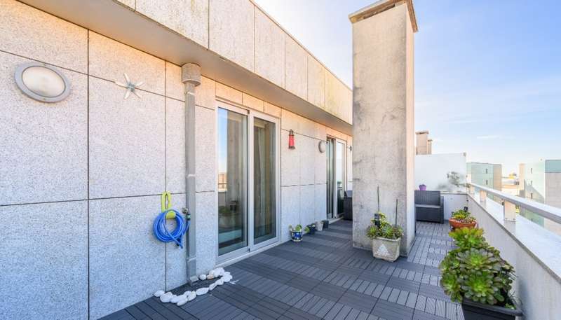 Two bedroom penthouse with terrace for sale, in the Castelo do Prado condominium, in Matosinhos Sul. Just a few meters from the beach, this fantastic 2-bedroom apartment with 113 m2 of private area has spacious areas, two suites, a guest toilet and a wonderful 20 m2 terrace. With a north-south exposure, the brightness of the spaces stands out in a condominium with 24-hour surveillance, garden, parking space and storage. Central location with all amenities and services just a stone's throw away. CHARACTERISTICS:Area: 113 m2 | 1 216 sq ft Bedrooms: 2 Bathrooms: 3 Garage: 1 Energy efficiency: B- FEATURES: Terrace with 20.00 m2. Storage room with 3.60 m2; Garage with 12.30 m2.