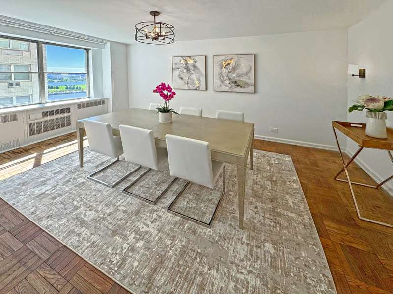 This spacious 2-bedroom apartment (convertible-3) with 2.5 baths is the ideal opportunity to enjoy gracious living in a first-class building. ; ;There is a very large living room offering sunlit views of Sutton Place and the Queensboro Bridge, and a decorative fireplace. ; The corner primary bedroom has bright western and southern views, an en-suite bathroom and four closets, including two walk-ins. ; The second bedroom has a wall of built-in shelves and cabinets, a closet and offers sunny views of the East River and Roosevelt Island. ; There is a windowed eat-in kitchen plus a separate Dining Room with river views. ; ;There are wood floors throughout, a total of nine closets (three of which are walk-ins), and an expansive entrance foyer. ; In need ;of some renovation, this is a rare opportunity to create one's perfect home. ; The installation of a washer/dryer is allowed with Board approval.