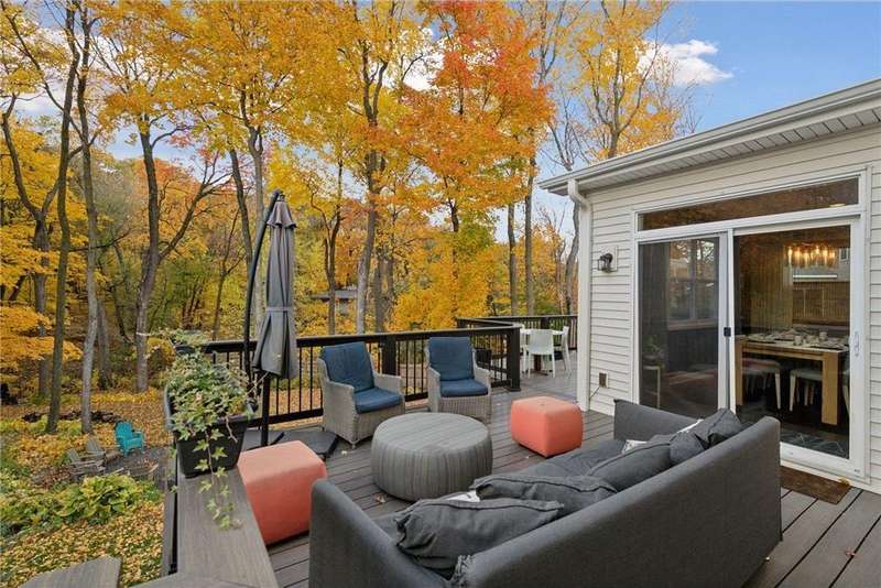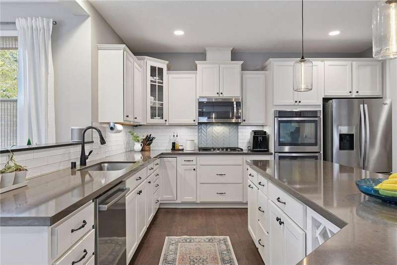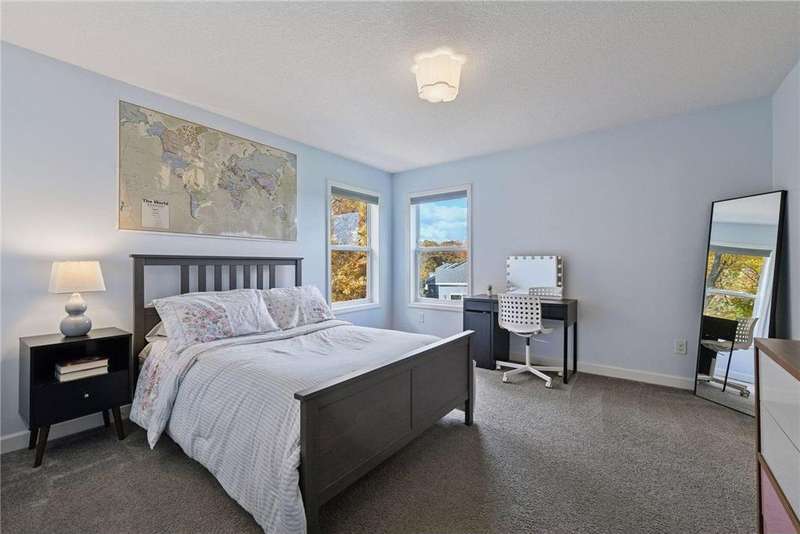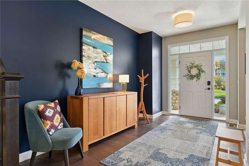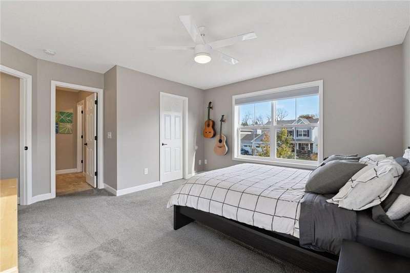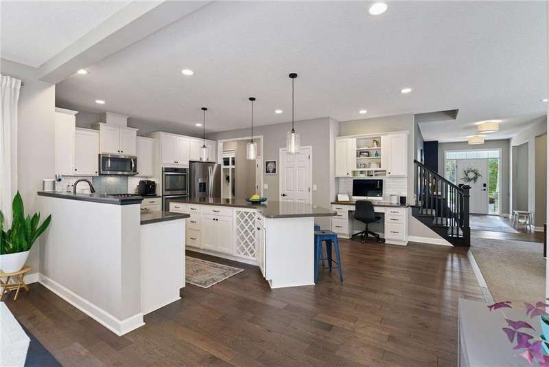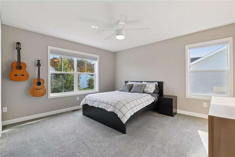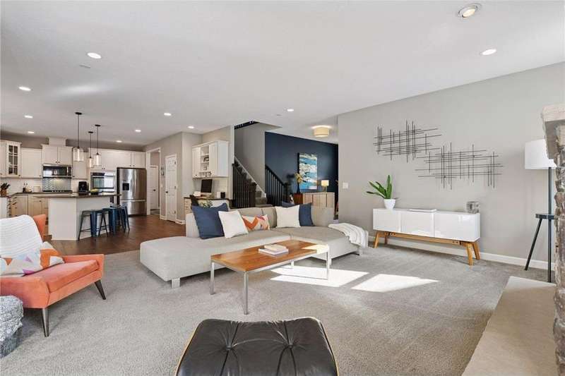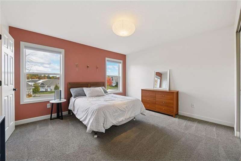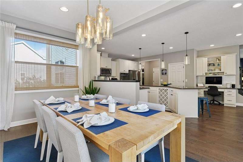Located on a premier lot with a deep, fenced backyard and sunset views, this home features the largest floor plan in the neighborhood. Walls of windows fill the interior with natural light and capture scenic views. The open main level includes a stone-surround fireplace and a chef’s kitchen with a large island, double ovens, stainless appliances, stone countertops, ample cabinetry, and pantry. The dining area opens to a spacious, low-maintenance deck. Main-floor bedroom and office offer flexible living options. Upstairs includes a loft, four bedrooms, three full baths, and a convenient laundry room. The primary suite features a tray ceiling, walk-in closet, and private bath with dual vanities, jetted tub, and tiled shower. The walkout lower level, finished in 2021, offers 9’ ceilings, family/media space, amusement area, wet bar with full-size refrigerator, plus a sixth bedroom and ¾ bath. The fenced backyard includes a firepit area for outdoor enjoyment. Close to Lake Minnetonka amenities with convenient bus access to Westonka and Orono schools.