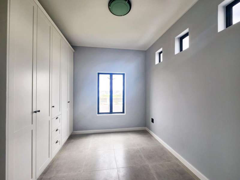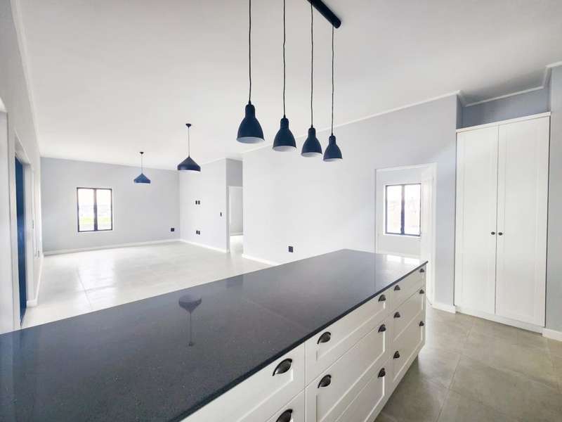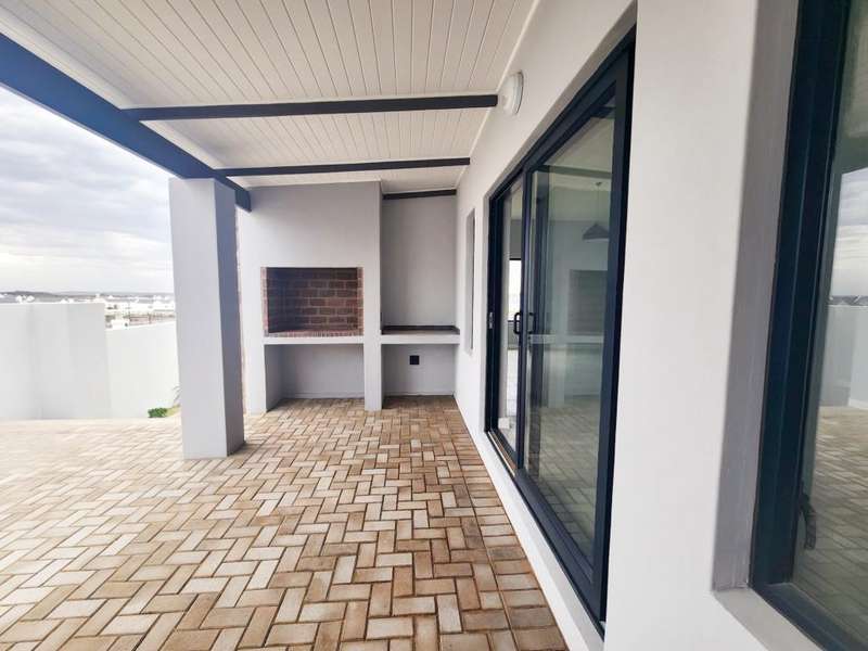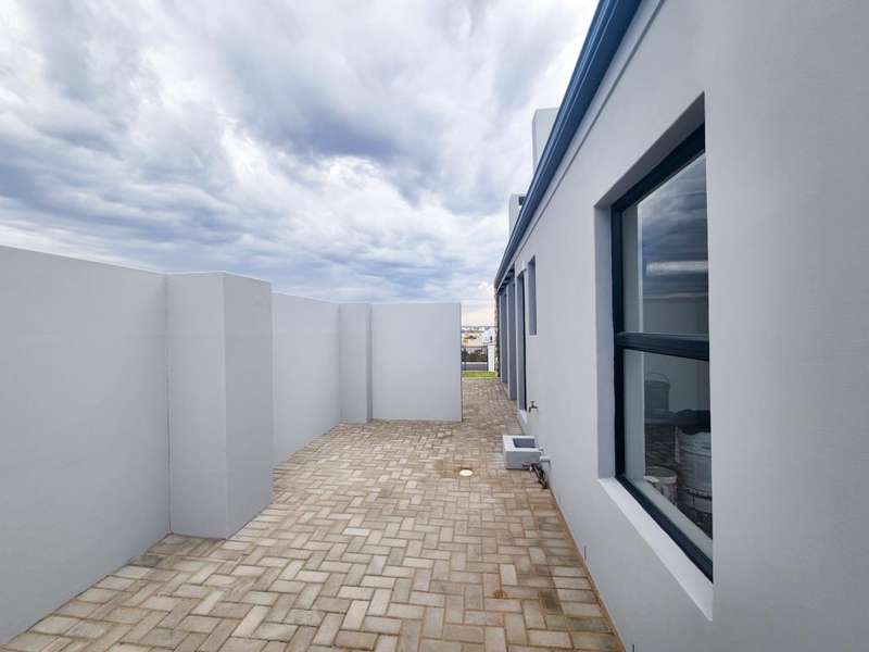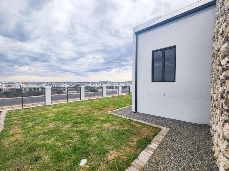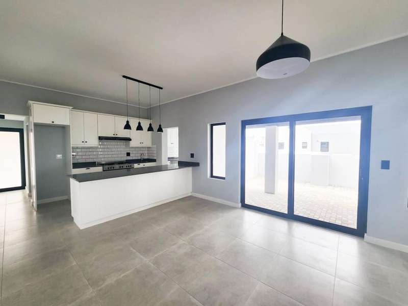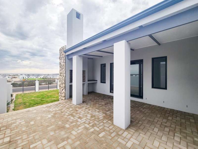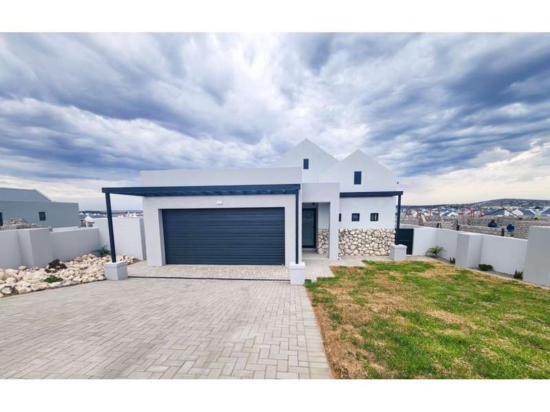 Stunning Brand-New Home in The Ridge, Langebaan ?Çô A Modern Masterpiece Nestled in the sought-after neighborhood of The Ridge, Langebaan, this brand-new home offers the perfect blend of contemporary design and luxurious finishes. From the moment you step inside, you?ÇÖll be greeted by an open-plan living and dining area, creating a seamless flow into a stylish kitchen designed for both functionality and beauty. The kitchen boasts an island, a built-in oven, and a gas hob ?Çô ideal for culinary enthusiasts. Adjacent to the kitchen, the scullery comes with a convenient door leading to the yard, keeping the space neat and organized. Step outside through the sliding doors to an inviting covered braai area, perfect for entertaining family and friends year-round. The property is designed for low-maintenance living, with a manicured green lawn and scenic views to enjoy every day. The home features three spacious bedrooms, each equipped with built-in cupboards. The main bedroom offers an ensuite bathroom, while the two additional bedrooms share a well-appointed family bathroom. Added comforts include a solar geyser, ensuring energy efficiency, along with electric fencing and a secure gated complex for peace of mind. Located just minutes away from the Laguna Mall, medical center, Club Mykonos, and the beach, this home offers the perfect balance of privacy, convenience, and lifestyle. Don't miss the opportunity to make this exceptional property your own ?Çô a true gem in Langebaan!
