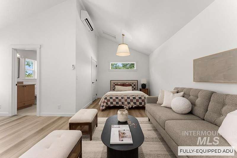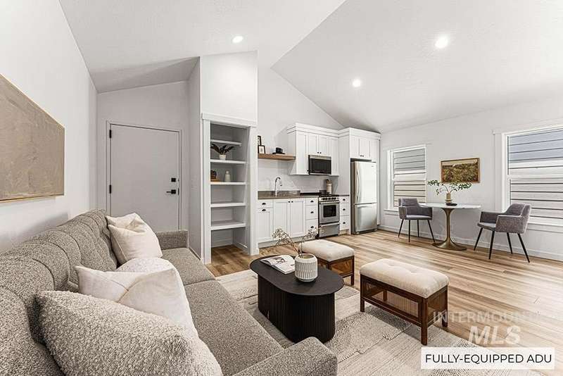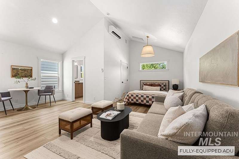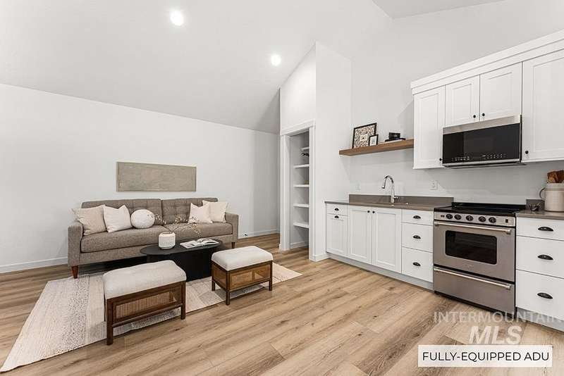 Step into effortless living in Northwest Boise, where modern design meets everyday flexibility in this newly built home by Iron Haven Homes. This property is ideal for those seeking a carefree lifestyle with the added value of an income-producing ADU or private guest suite. The open-concept layout creates a welcoming space for relaxing or entertaining, highlighted by wide-plank wood floors and elevated design elements. The kitchen features a sleek quartz island, custom cabinetry, walk-in pantry, tile backsplash, and stainless steel appliances. The luxe master suite includes a spa-style bath, with dual sinks, tile flooring, and a walk-in closet. A fully registered ADU offers the ultimate versatility for short-term rental, long-term income, workspace, or private quarters for guests. With yard care managed by the HOA, you’re free to lock up and go, whether you’re heading out for travel, a weekend downtown, or time in the Boise foothills. This location places you minutes from schools, parks, trails, & DT Boise.
