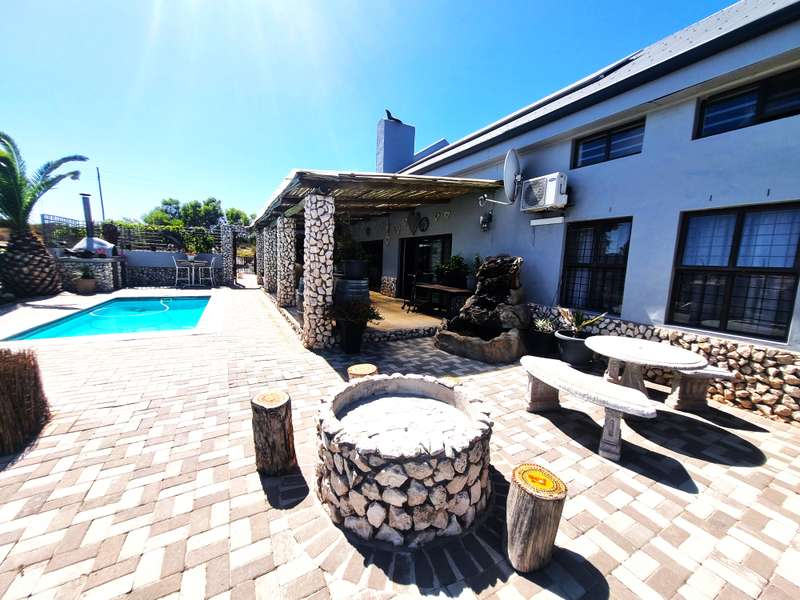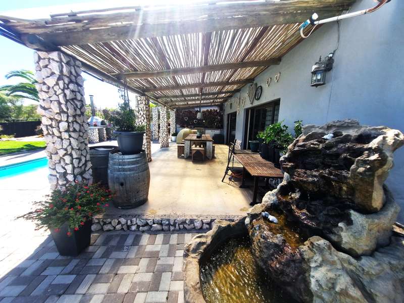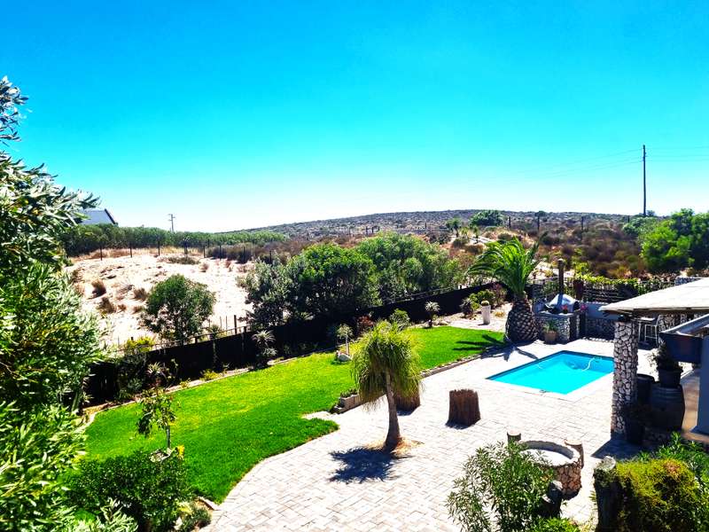 Escape to Coastal Bliss in Long Acres Country Estate We invite you to discover a gorgeous three-bedroom smallholding nestled within the coveted Long Acres Country Estate in Langebaan. This property seamlessly blends comfort, security, and luxury, offering an idyllic coastal lifestyle. Step inside and be captivated by a stylish yet functional atmosphere. The open-plan living, dining, and kitchen areas create a warm and inviting space with a touch of rustic charm. The three bedrooms are generously proportioned. The master suite features an attached bathroom and a walk-through closet, while the other two bedrooms share a full bathroom. Upstairs, a versatile loft awaits. Whether you envision a guest suite, a spacious home office, or a creative retreat, the possibilities are endless. Embrace the outdoors! A sparkling pool beckons on warm Langebaan days, surrounded by breathtaking views of the surrounding landscape. Enjoy al fresco dining on the patio or unwind by the pool, soaking in the serenity. The property boasts a charming enclosed yard, perfect for entertaining. Gather around the fire pit, enjoy a braai, or savor a pizza cooked in the outdoor pizza oven. Sustainability meets luxury. The property features 4KW solar power, six 5,000-liter water tanks, and a rainwater catchment system. Additional features include: Three automated garages (one extended) with ample space for boats. Two air-conditioned rooms. Enhanced security with gate access control. A convenient tool/warehouse area. Don't miss this opportunity to experience the idyllic coastal lifestyle that Langebaan offers. Contact me today to schedule a viewing.