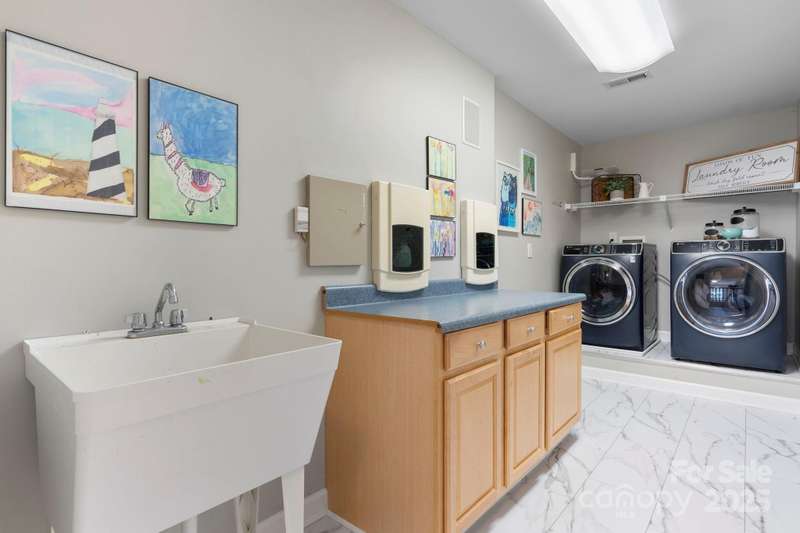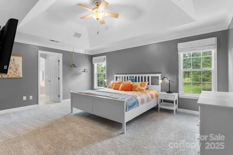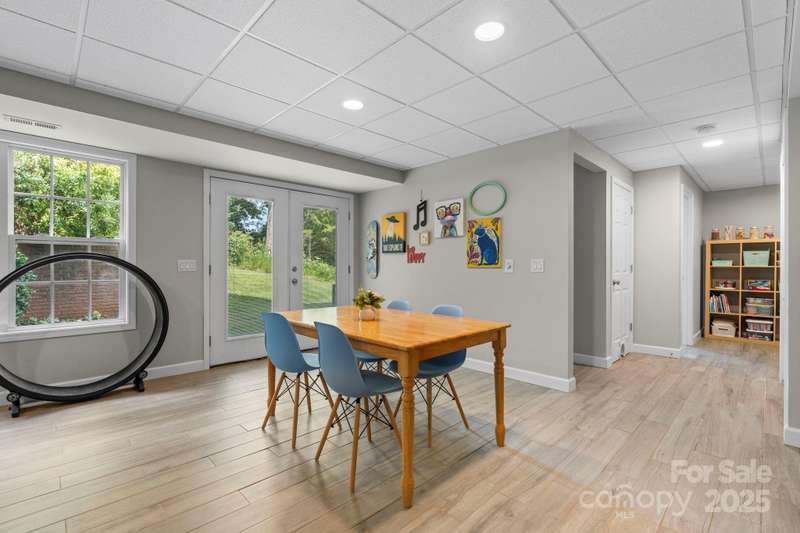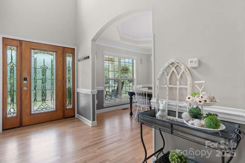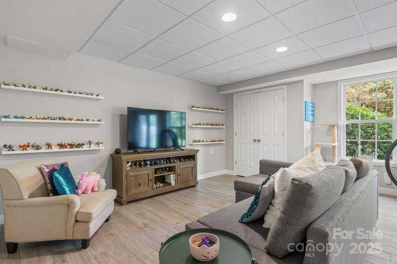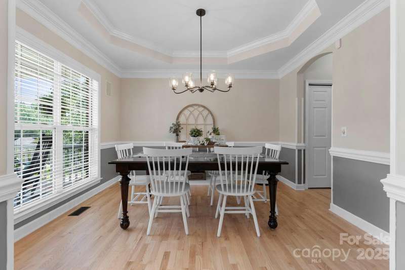 Step inside and feel instantly at home. Quality craftsmanship shines throughout, from the keeping room with coffered ceiling and fresh paint to the formal dining room with tray ceiling and stylish lighting. The kitchen features quartz countertops, ample cabinetry, generous workspace, and a gas range. The two-story great room impresses with a wall of windows and a cozy fireplace and refinished wood flooring on main. The spacious owner's suite offers room for large furnishings, a jetted tub, walk-in shower, dual vanities, and plenty of storage in a hidden closet in primary. Secondary bedrooms are conveniently located on the same level with great closet space. The finished basement includes a large living area, kitchenette, and deluxe bath with walk-in shower-perfect for guests or multi-generational living. Enjoy outdoor living on the paver patio with a built-in firepit, ideal for entertaining. Refinished hardwood floors complete the main level. Schedule your private showing today!