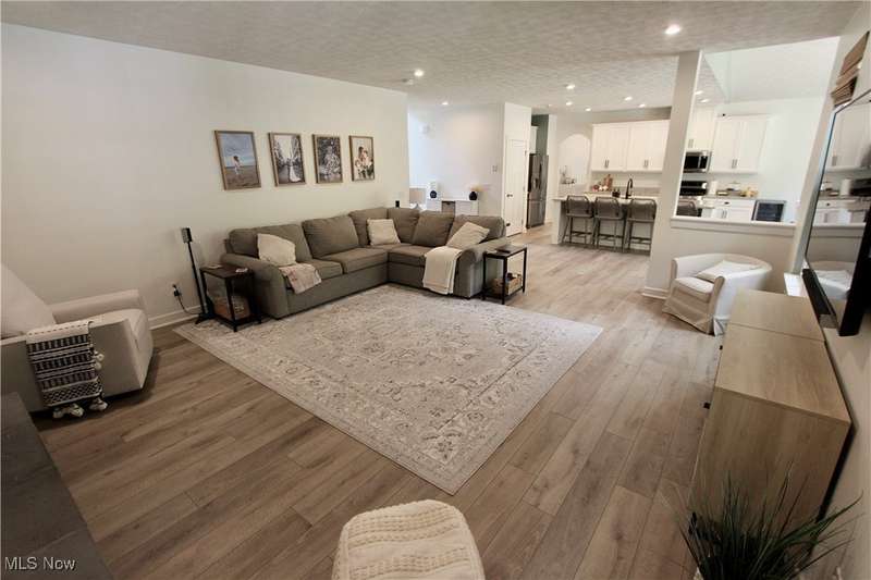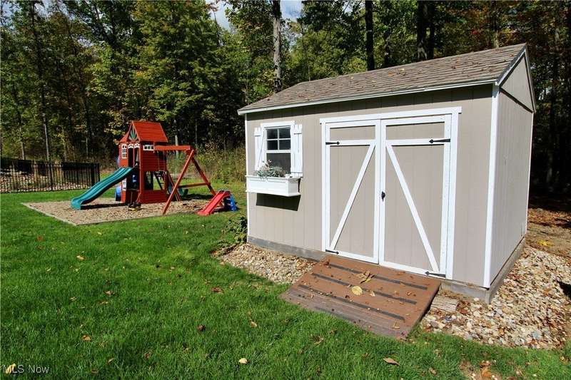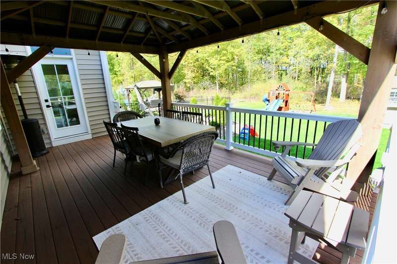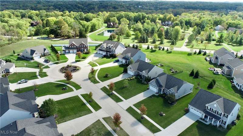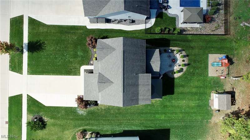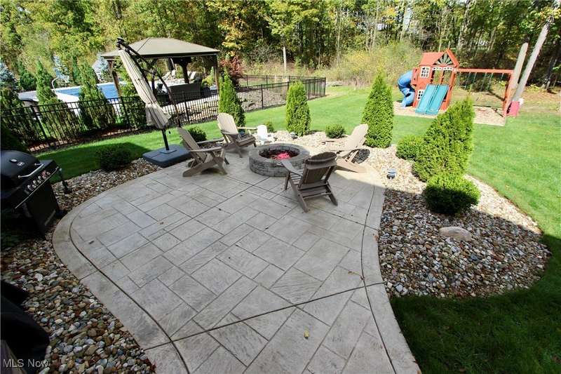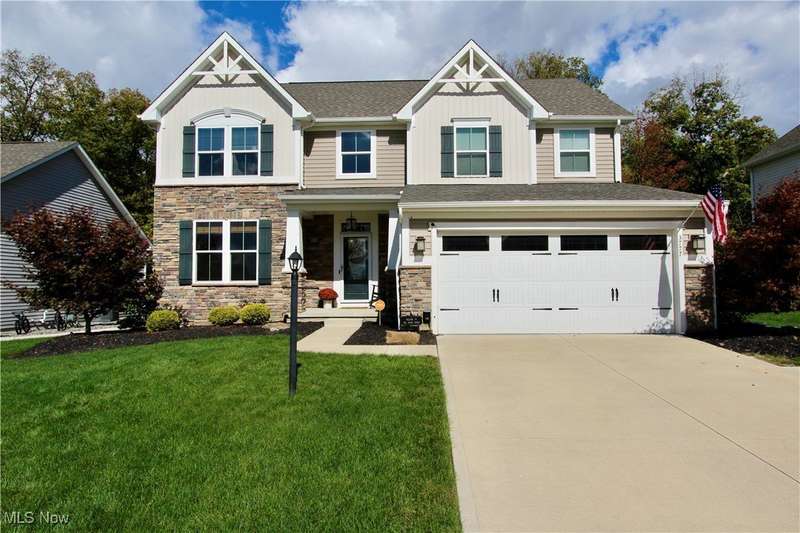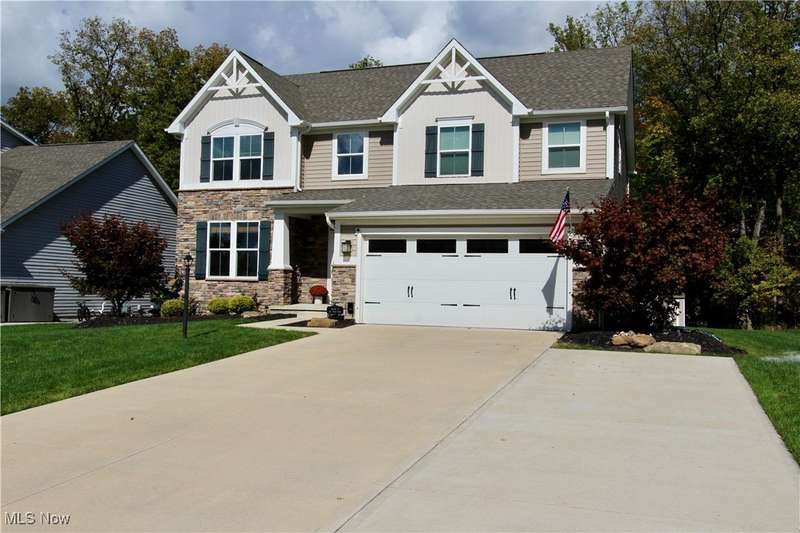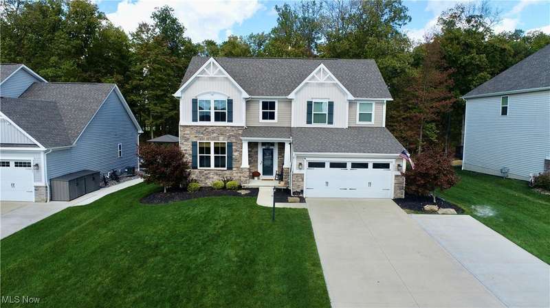 Discover this stunning 2019-built, four-bedroom, 2.5-bath home nestled in the desirable Weymouth Crossing development in Medina, Ohio. This modern residence offers spacious living with an open floor plan, featuring an oversized kitchen island perfect for family gatherings and entertaining. Enjoy the beautifully landscaped yard with lawn irrigation system, and entertain outdoors on the pergola-covered TimberTech deck and stamped concrete patio, complete with an outdoor fire ring and seating area-ideal for relaxing and hosting guests. The home is equipped with a security system and a full basement, ready to be finished with hookups for a full bathroom, providing ample potential for additional living space. Ideally situated in a fantastic area that backs up directly to Weymouth Country Club. Combining stylish design, outdoor features, and modern conveniences, this home truly has it all.