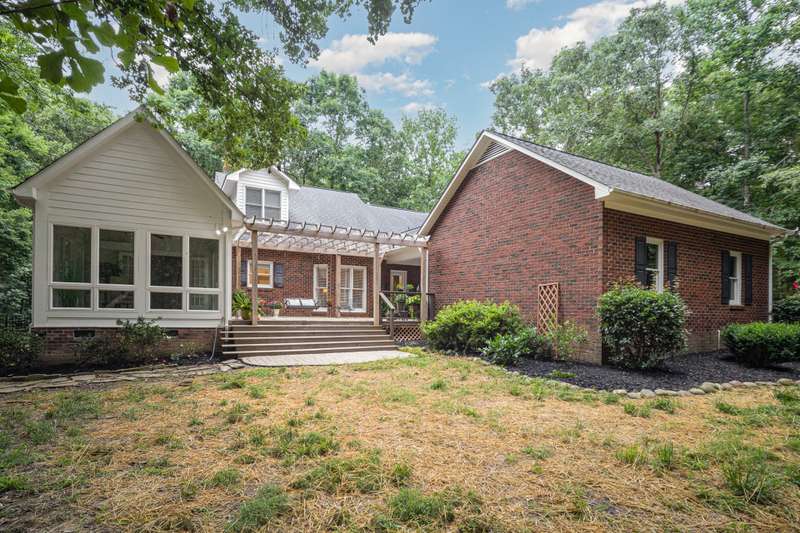Welcome to your private retreat, just minutes from Waxhaw! Set on 3.9 wooded acres, this updated all-brick home blends modern upgrades with timeless charm and peaceful outdoor living. Inside, enjoy new flooring throughout the main living areas and a renovated primary bathroom that feels like a personal spa. The updated kitchen flows into a cozy den with a fireplace, perfect for relaxing evenings. A bright sunroom overlooks the private, fenced acreage, while a large back deck is ideal for entertaining or unwinding, surrounded by mature trees. The covered front porch offers a peaceful spot for morning coffee. With multiple bonus rooms, there's flexible space for a home office, gym, or playroom. Featuring three spacious bedrooms and three full baths, everyone has room to spread out. This unique home provides unmatched privacy, while still being conveniently close to local shops, dining, and top-rated schools, offering the perfect combination of seclusion and convenience.
