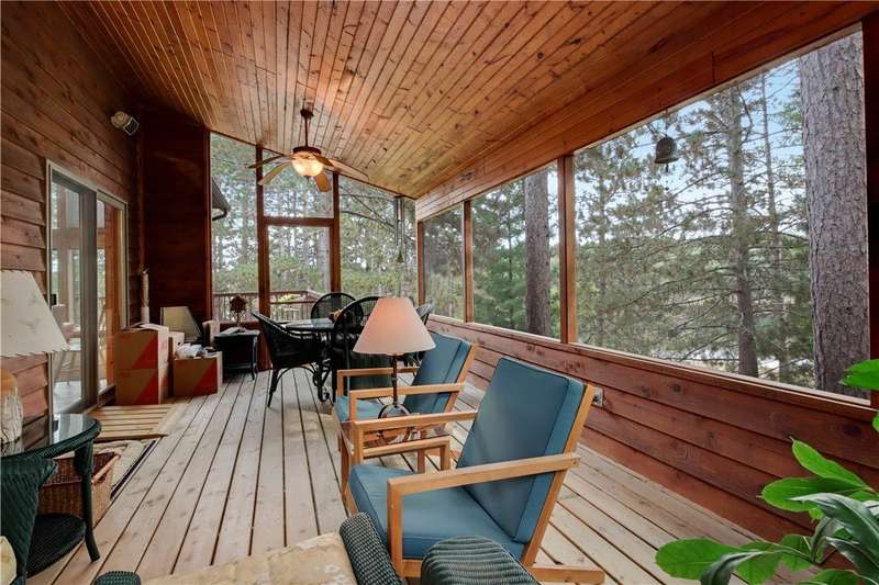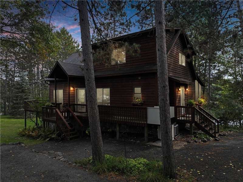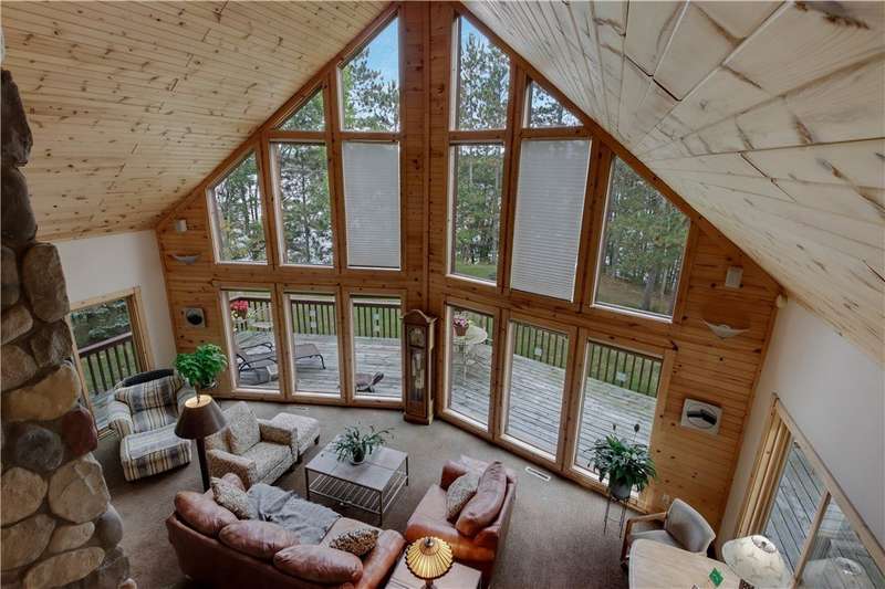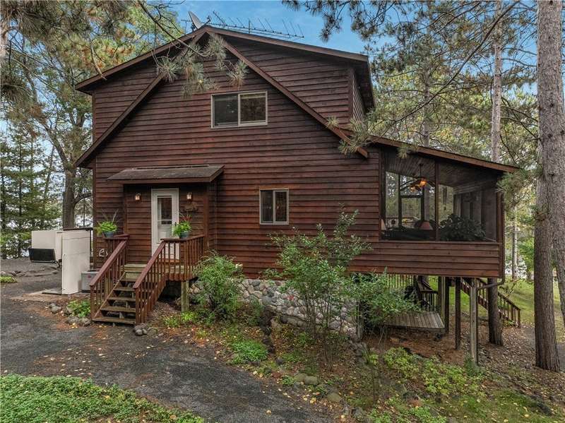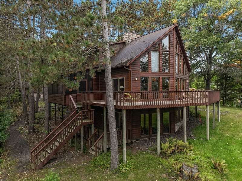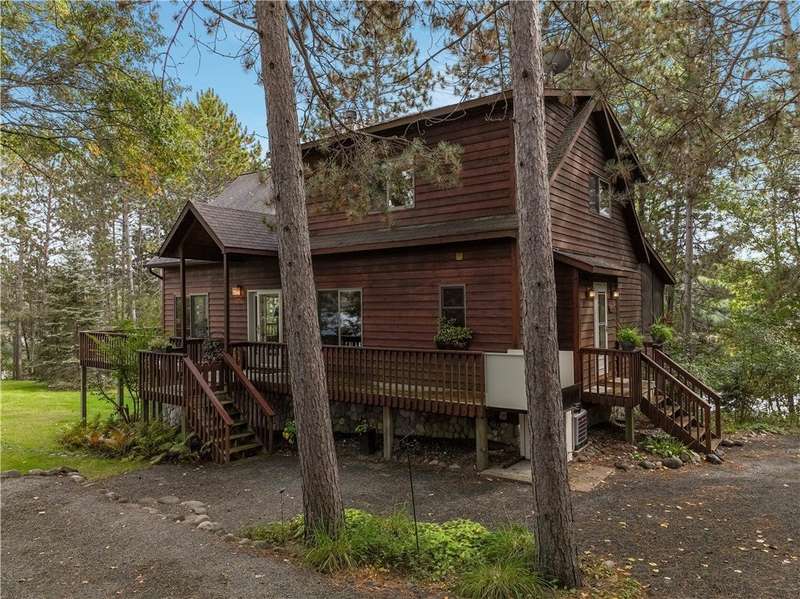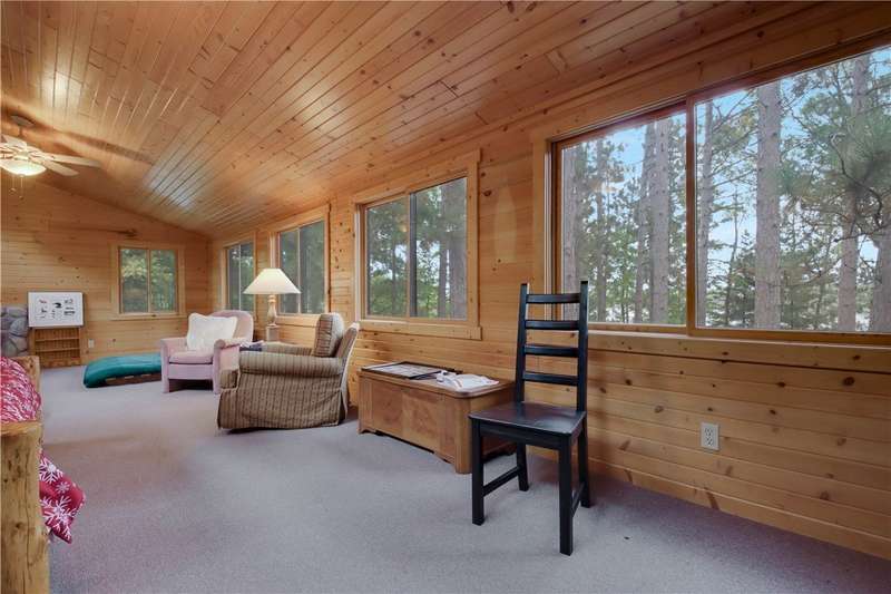Private peninsula on 115 acre, 29 ft deep, full recreation South Twin Lake with over 750' of private kid-friendly sand beach, perfect for sandcastles. This chalet lake home features panoramic views framed with mature pine trees for that "Up North" feel. The private drive through the woods provides a welcoming sense of arrival to a special place. This end-of-the-road location creates a controlled environment for you and guests. Your new home is meticulously maintained and offers special features like a bunkhouse over the spacious 3-car garage, a second kitchen in the walkout, a massive lakeside screened porch, and towering windows in the great room that reach to the stars. You will love the large kitchen with plenty of storage and workspace on the stone countertops, including the massive center island, a perfect gathering area for friends and family. The large loft Master Suite overlooks the lake. Offered with 6 additional acres. Enjoy life North of the Tension Zone on South Twin Lake.