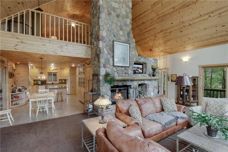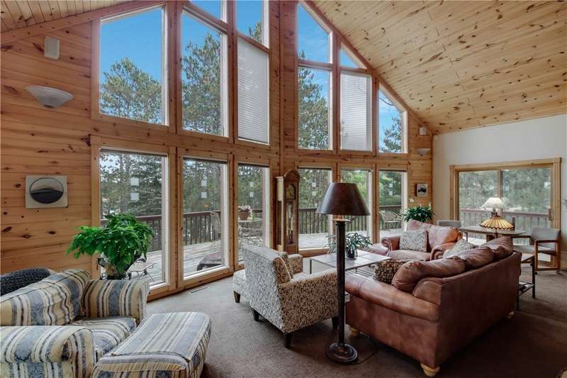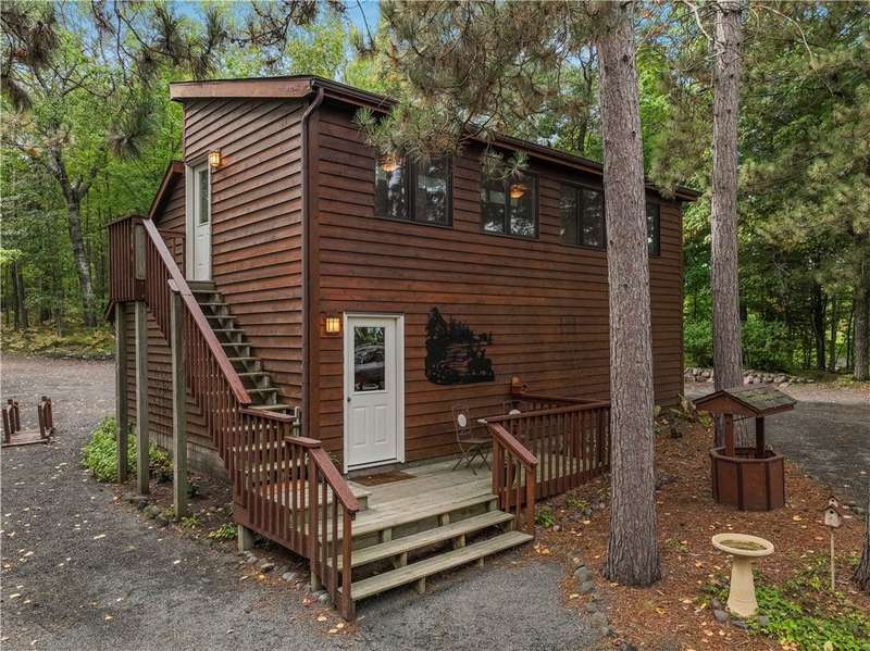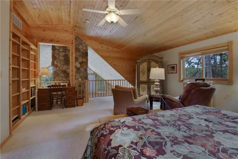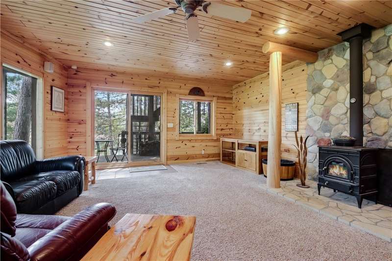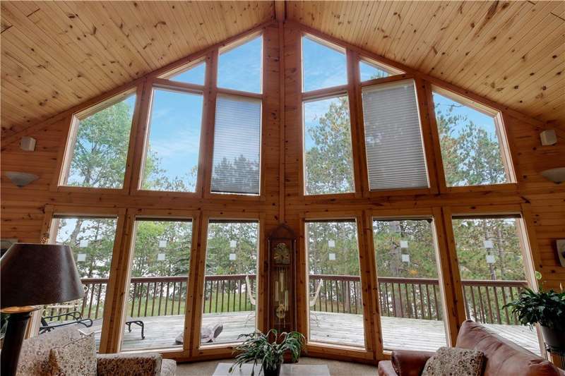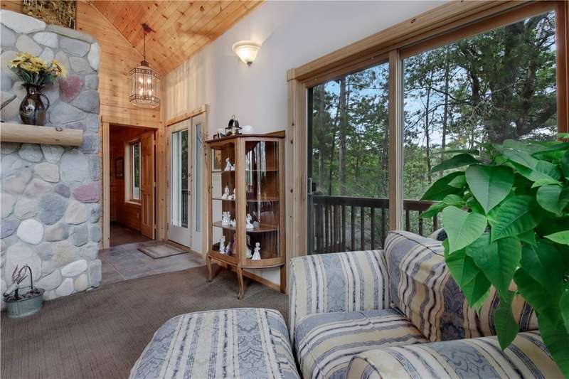 Private peninsula on 115 acre, 29 ft deep, full recreation South Twin Lake with over 750' of private kid-friendly sand beach, perfect for sandcastles. This chalet lake home features panoramic views framed with mature pine trees for that "Up North" feel. The private drive through the woods provides a welcoming sense of arrival to a special place. This end-of-the-road location creates a controlled environment for you and guests. Your new home is meticulously maintained and offers special features like a bunkhouse over the spacious 3-car garage, a second kitchen in the walkout, a massive lakeside screened porch, and towering windows in the great room that reach to the stars. You will love the large kitchen with plenty of storage and workspace on the stone countertops, including the massive center island, a perfect gathering area for friends and family. The large loft Master Suite overlooks the lake. Offered with 6 additional acres. Enjoy life North of the Tension Zone on South Twin Lake.