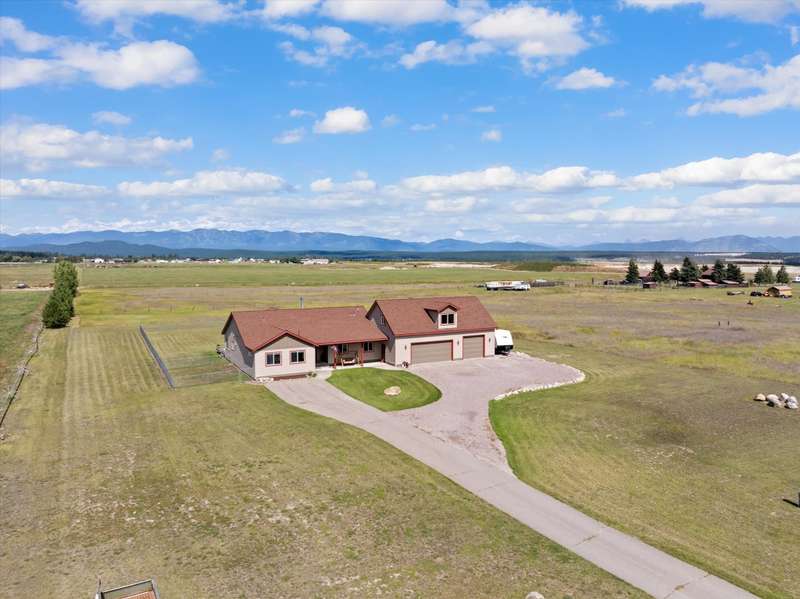 The beautiful ranch-style estate features end-of-the-road privacy on 5.56 acres and amazing 360 degree mountain views! This fully updated & renovated property includes 6 bedrooms, 4 bathrooms & several bonus rooms. The main floor features an open floor plan with the kitchen/living/dining area all open and offering great views of the Whitefish & Salish Mountain Ranges. Hand-scraped wood floors, custom beamwork, & wrought iron stair railings adorn the main floor. Four bedrooms are located on the main floor inclding the primary bed & bath and an addtional bed & bath that makes a great 2nd primary or MIL suite. The lower level adds 2 more bedrooms and a couple of rooms that would be ideal for a media room, gym or office. Above the garage you'll find an additional 684 SF unfinished apartment that's ready to finish out as a guest suite or a Airbnb / VRBO nightly rental! Schedule your showing today. Outside you'll find 5+ acres of grassy fields that is ready for you to enjoy! A portion of the backyard offers a chain link fence for kids and/or pets. There's plenty of space to add a barn, workshop, ADU, or other out buildings. Enjoy majestic 360 degree views all around with views of the Whitefish Range, Swan Mountains, Blacktail Mountain, & Salish Mountains all around.