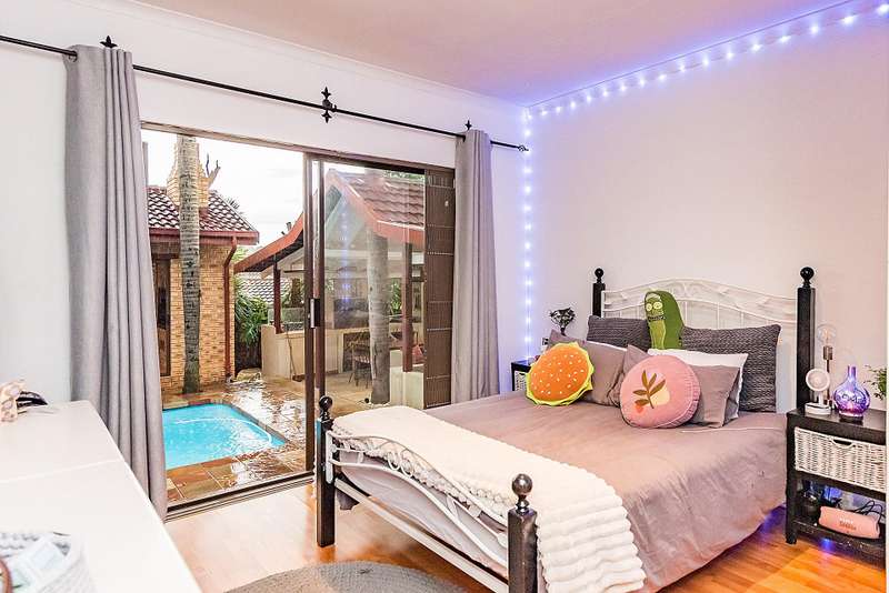 Downstairs, 4 bedrooms on a separate wing with two Full bathrooms and guest toilet, Bedrooms with laminate floors, Large open Aluminum sliders, with views onto pool area. 4th Bedroom Leads onto pool and offers, Large en-suite bathroom, with access outside to double up for entertainment area.