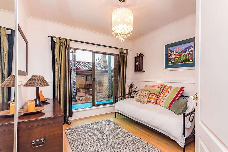 Get Ready to entertain, Private pool area, Pool with solar heating. Outside, undercover patio with built in braai and outside dining area PLUS casual outside lounge area, with chandelier and built in benches. Beautiful lighting and palms trees to set the scene.... Immaculate lawns and landscaped garden.
